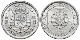 Macau. 5 patacas. 1952. (Km-5). (Gomes-22.01). Ag. 15,06 g. Mint state. Est...25,00.