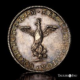 Mexico. Agustín de Iturbide. 8 reales. 1822. Mexico. JM. (Km-304). Ag. 27,03 g. First and, popular type known as "Pollito". Delicate patina. Rare. Choice VF. Est...700,00.