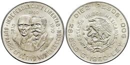 Mexico. 10 pesos. 1960. Mexico. (Km-476). Ag. 28,99 g. 150th Anniversary of the War of Independence. AU. Est...60,00.