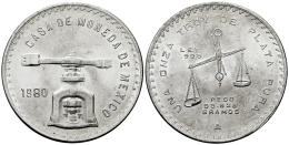 Mexico. 1 ounce. 1980. Mexico. (Km-49b). Ag. 33,56 g. Original luster. Almost MS. Est...50,00.