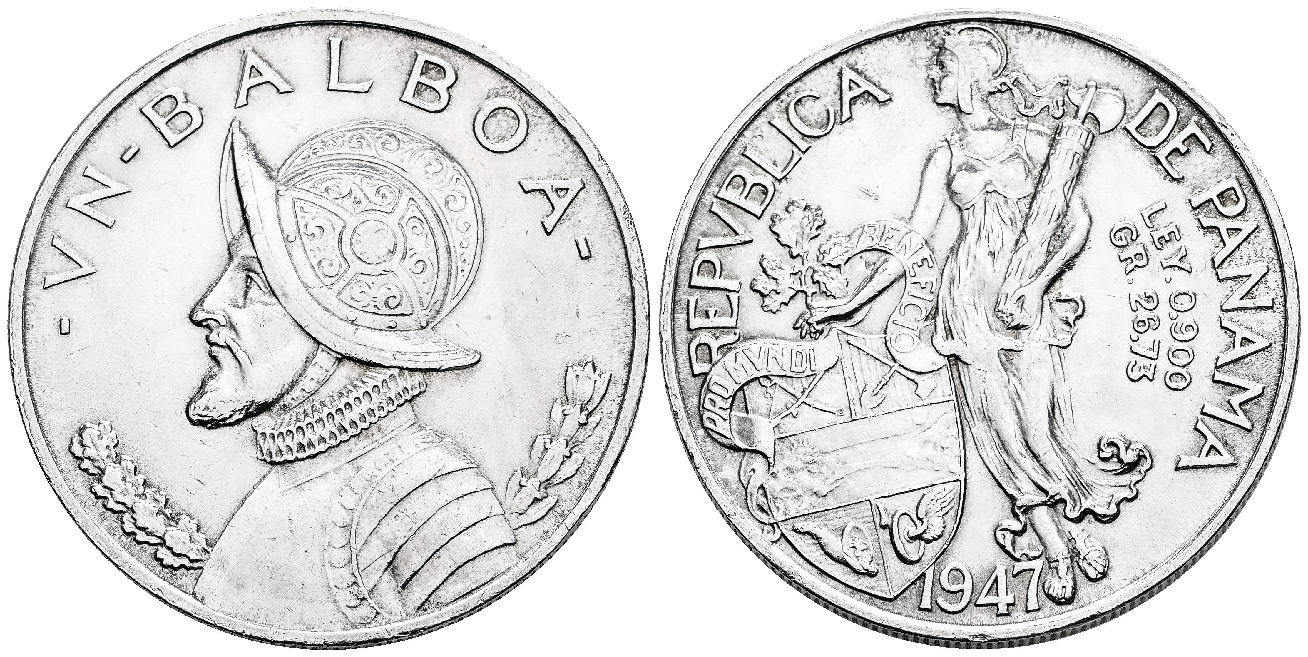 Panama. 1 balboa. 1947. Philadelphia. (Km-13). Ag. 26,74 g. Slightly cleaned. XF. Est...50,00.