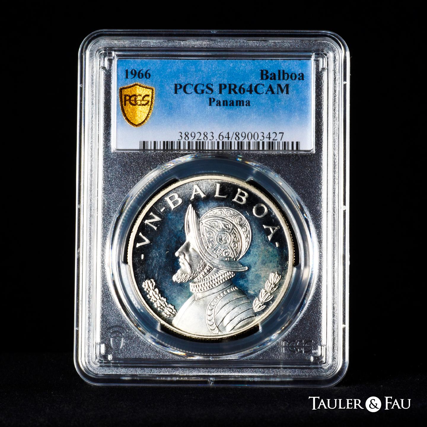 Panama. 1 balboa. 1966. (Km-27). Ag. Plenty of original luster. Slabbed by PCGS as PR 64 CAM. Est...150,00.