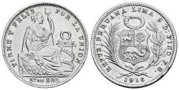 Peru. 1/5 sol. 1916. Lima. FG. (Km-205.2). Ag. 4,96 g. Minor nicks on edge. Original luster. Almost MS. Est...50,00.