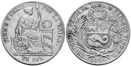 Peru. 1 sol. 1884. Lima. (Km-196.19). Ag. 24,81 g. Hairline. Choice VF. Est...45,00.