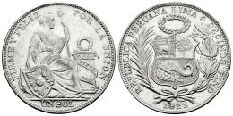 Peru. 1 sol. 1925. Lima. (Km-218.1). Ag. 24,88 g. Traces of luster. Almost XF/XF. Est...30,00.
