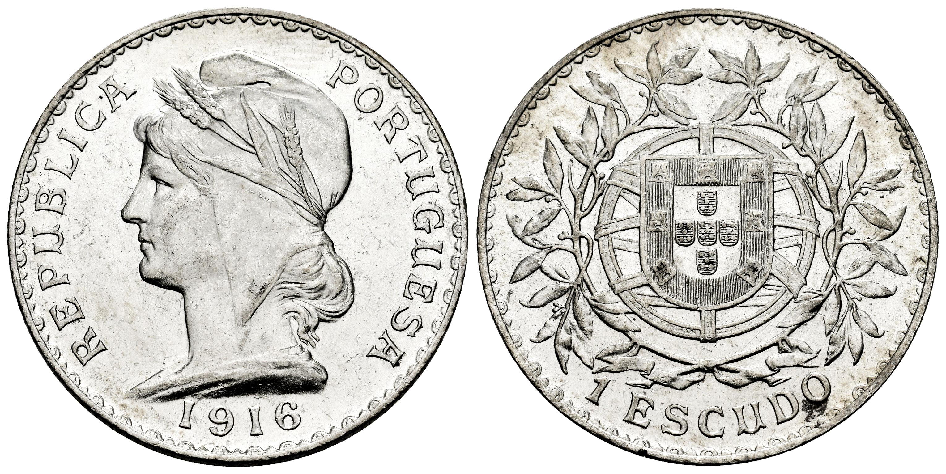 Portugal. 1 escudo. 1916. Lisbon. (Km-564). (Gomes-23.02). Ag. 24,91 g. Minimal marks. Minor nick on edge. Original luster. Almost MS. Est...70,00.