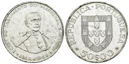 Portugal. 50 escudos. 1969. Lisbon. (Km-599). (Gomes-R65). Ag. 18,18 g. Centenary of the Birth of Marechal Carmona. Original luster. Almost MS/Mint state. Est...25,00.