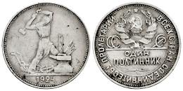 Russia. 50 kopeks. 1924. PL. (Km-Y89.1). Ag. 9,96 g. Cleaned. Choice VF. Est...20,00.