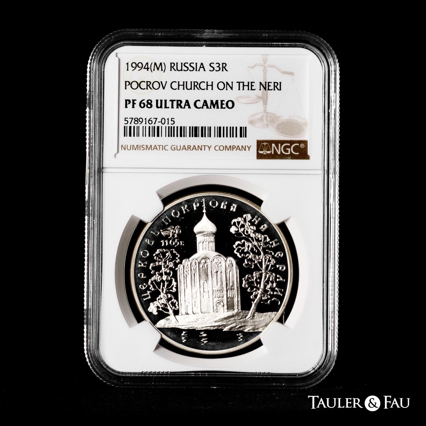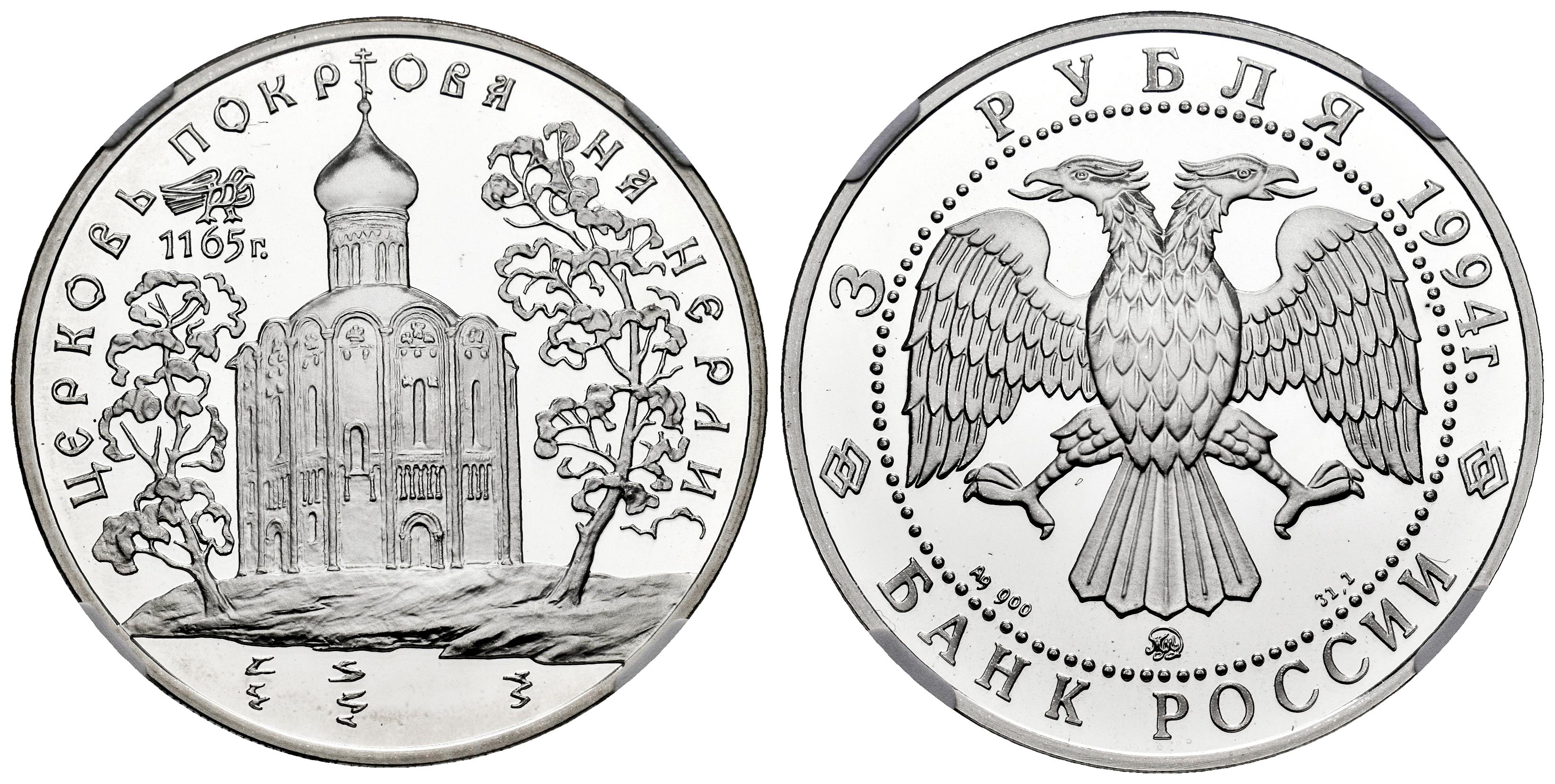 Russia. 3 roubles. 1994. Moscow. (Km-Y#458). Ag. Pokrov Church. Slabbed by NGC as PF 68 ULTRA CAMEO. Est...50,00.