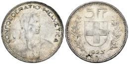 Switzerland. 5 francs. 1923. Bern. B. (Km-37). Ag. 24,94 g. Minor nicks on edge. Almost XF. Est...45,00.
