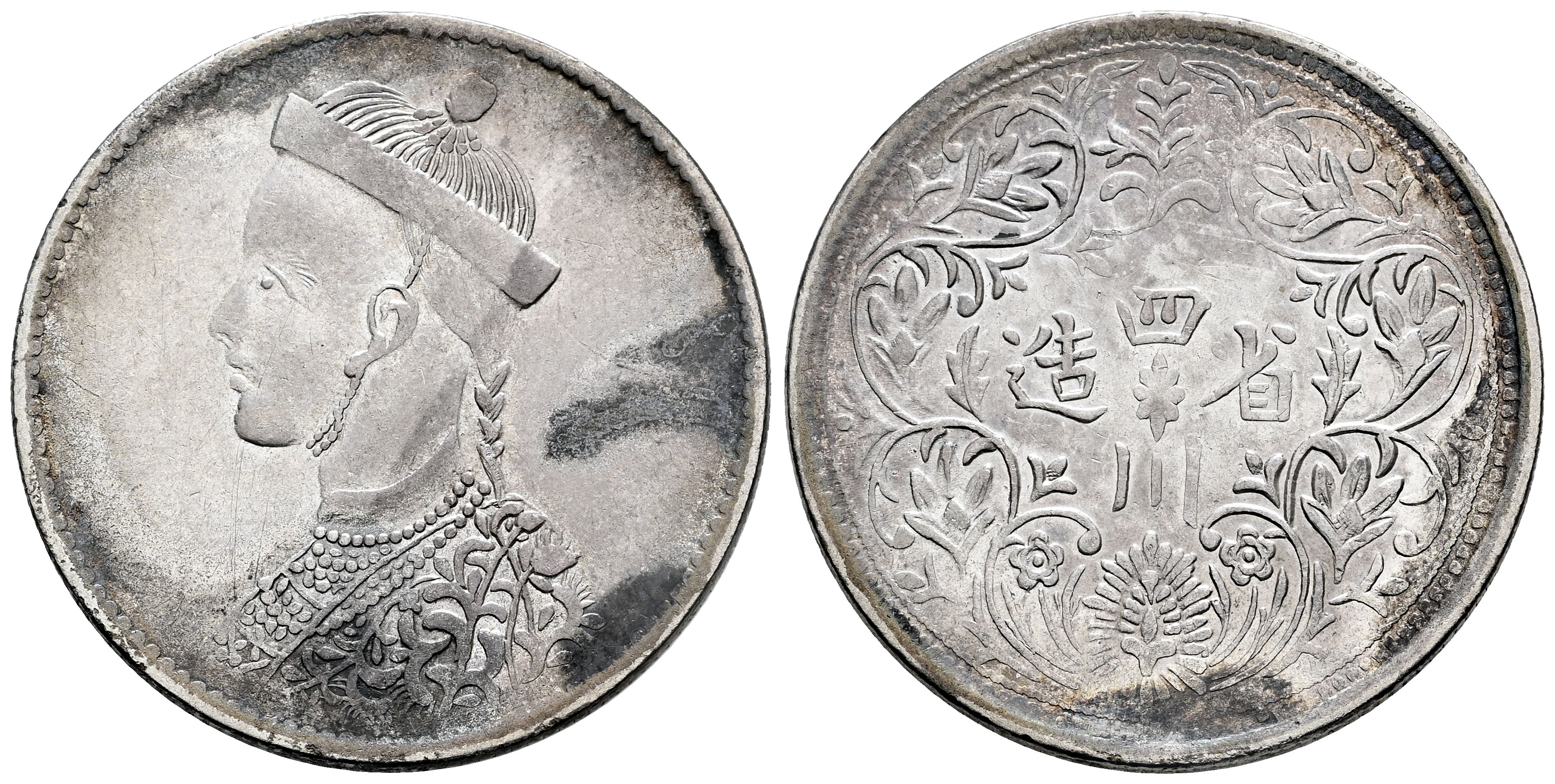 Tibet. 1 rupee. 1911-1916. (Km-3.2). Ag. 11,45 g. Stains. Traces of luster. Almost XF. Est...120,00.
