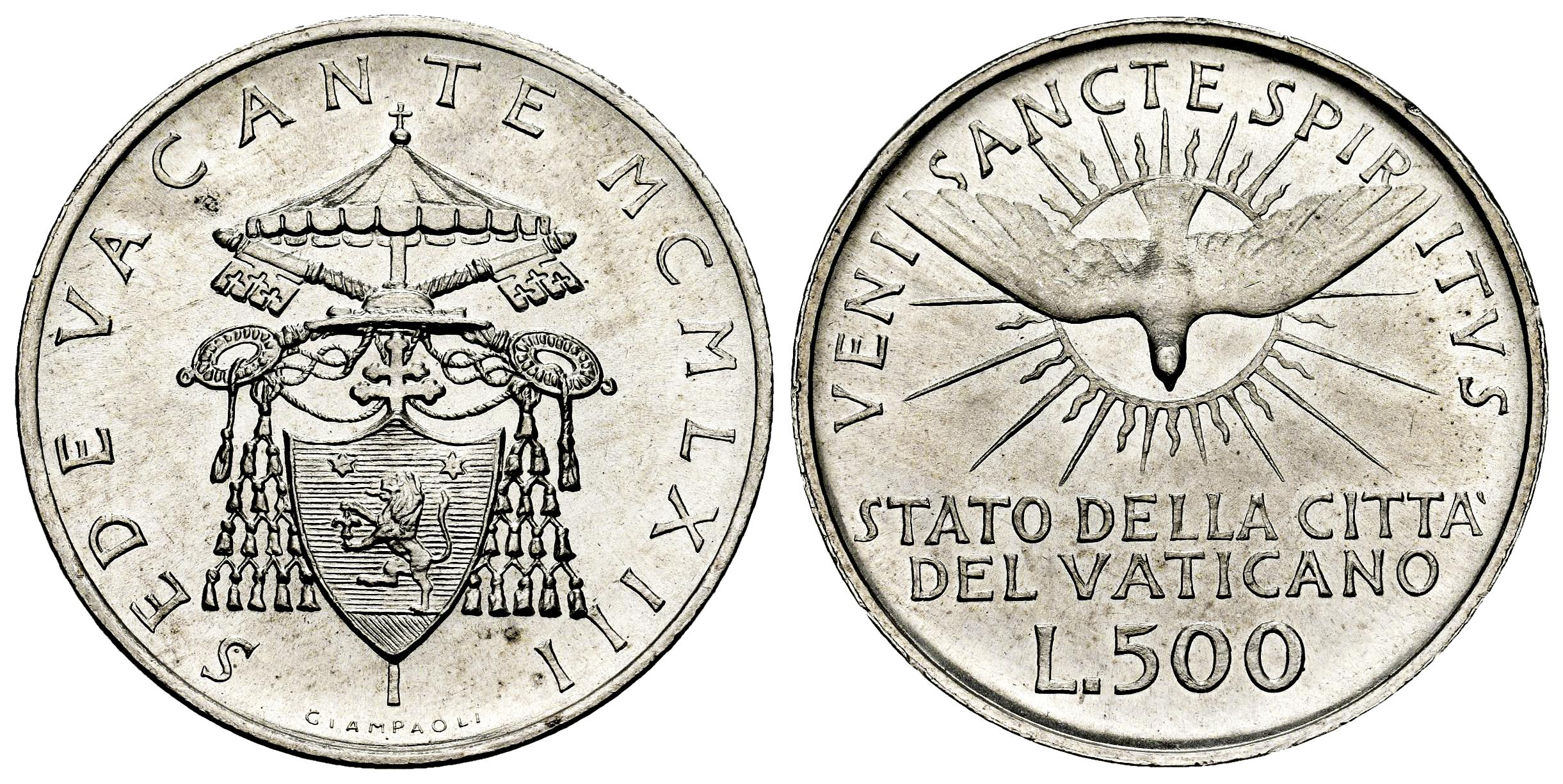 Vatican. 500 Lira. 1963. Rome. (Km-75). Ag. 11,01 g. Vacant seat. Plenty of original luster. Mint state. Est...45,00.