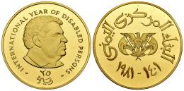 Yemen. 25 riyals. AH 1401 (1981). Piefort. (Km-P1). Ag. 56,83 g. International Year of Disabled Persons. Gold plated. In case. Mintage: 1.150 pieces. Est...100,00.