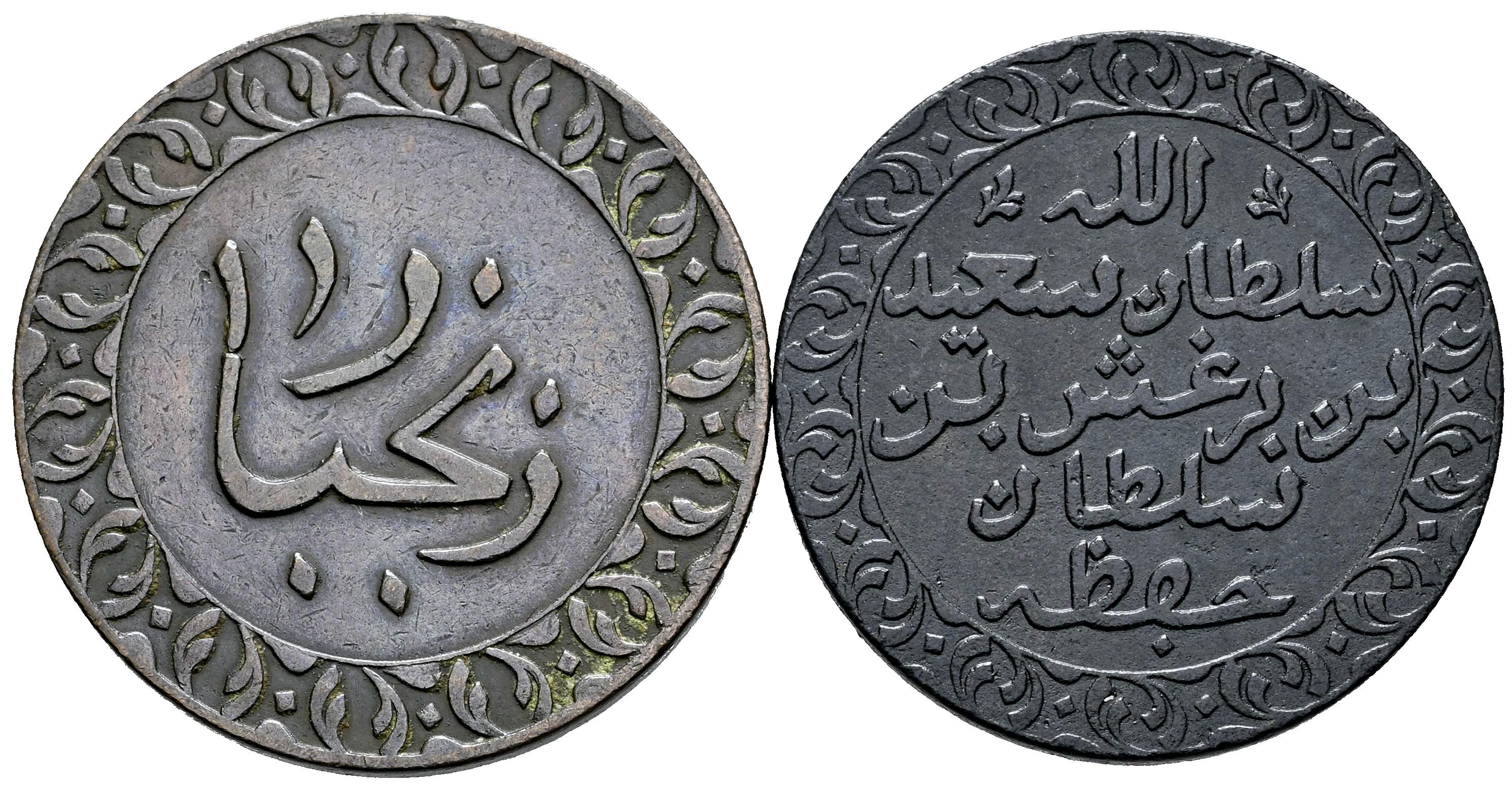 Zanzibar. Sultan Barghash ibn Sa'id. 1 pysa. 1299 AH and 1304 AH (1882-1886). Heaton. (Km-1 and 7). Ae. VF/Choice VF. Est...60,00.