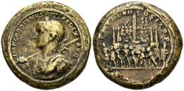 Gordian III. Medal. 19th century AD. (Gnecchi-10). (Grueber-5). Anv.: IMP GORDIANVS PIVS FELIX AVG.  Laureate, draped and cuirassed bust left, holding spear over shoulder. Rev.: P M TR P COS II P P. View of the interior of the Circus Maximus, obelisk in the center, three metae to either side, two chariots racing around spina; in the foreground, from left to right, wounded gladiator being led away by an attendant, two boxers boxing, a pair of pancratiastae, two wrestlers, two gladiators; in the background, Gordian in a chariot drawn by six horses, Victory standing alongside placing wreath on Gordian's head, the chariot being preceded by three soldiers carrying palms. Ae. 40,92 g. Cast bronze. Ex Asta Negrini (28/03/1990), lot 2181. VF. Est...120,00.