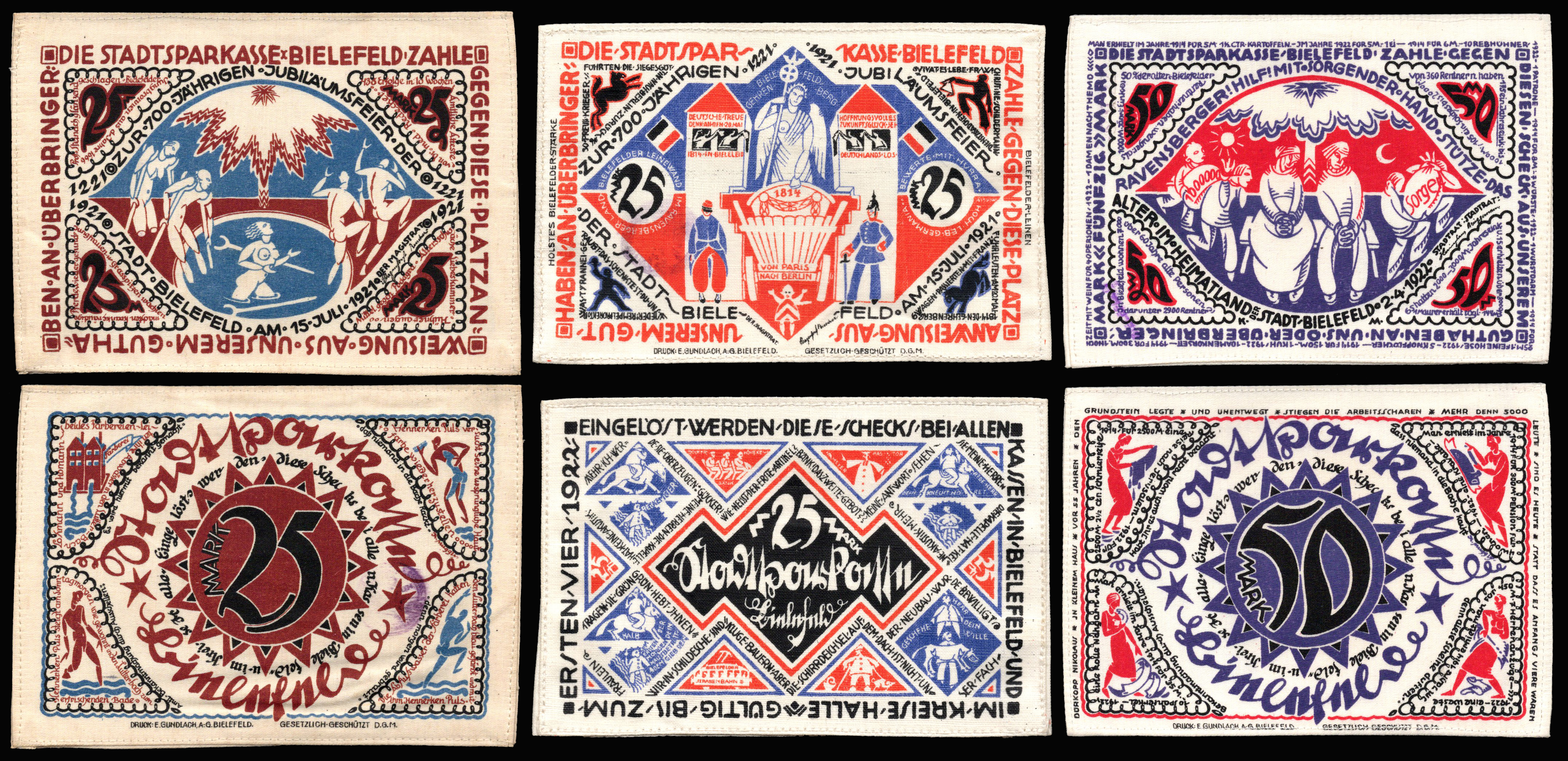 Germany. Lot of 3 Germany Bielefeld local issues; 25 marks 1921 (2), 50 marks 1922 (1). Silf. Est...45,00.