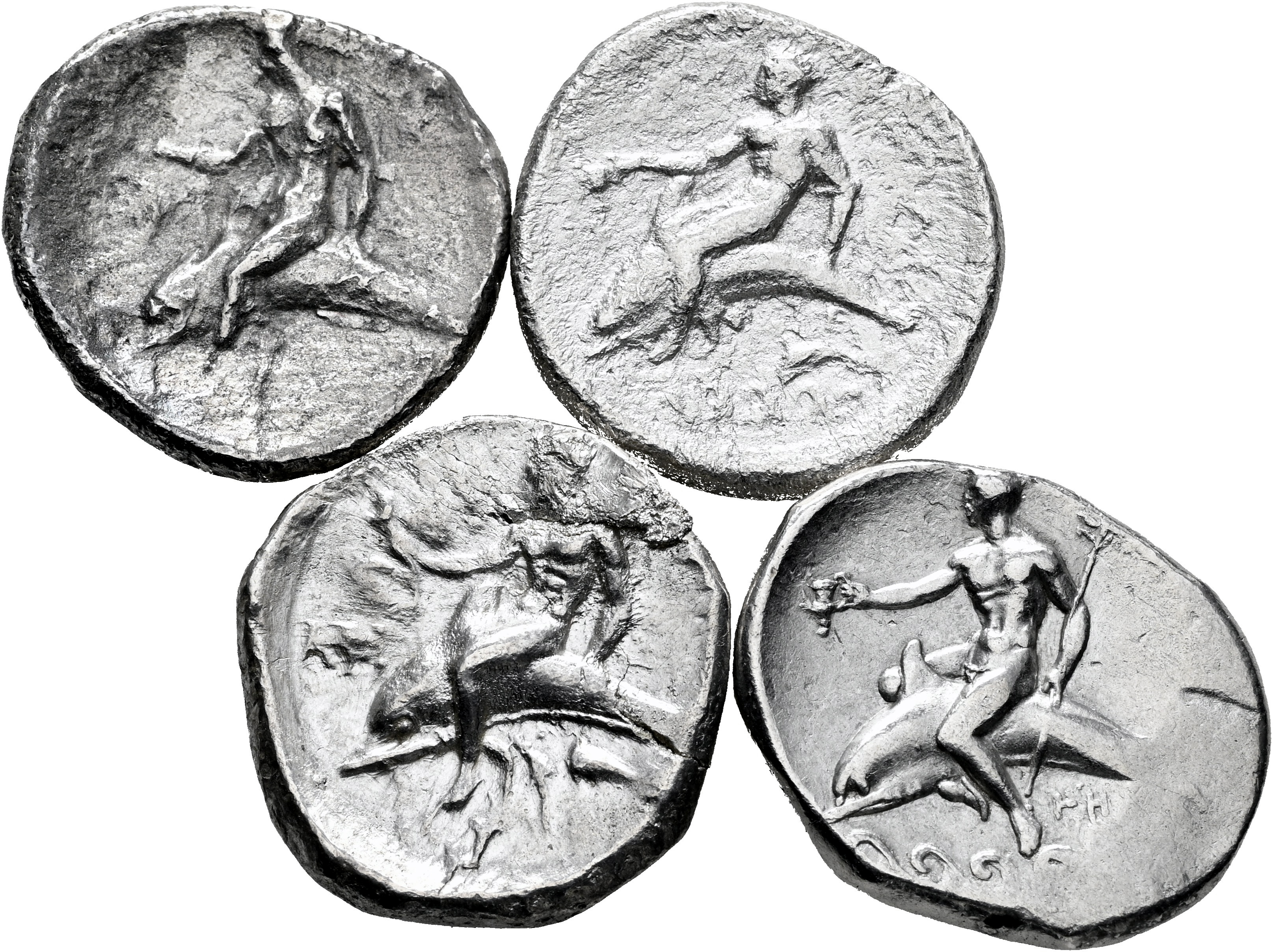 Lot of 4 Nomos from Calabria, Tarentum. Four different types. Ar. It is essential a rigorous examination of the lot. ONLY SHIPPING TO SPAIN PENINSULA. NO RETURNS ALLOWED. Almost VF/VF. Est...800,00.