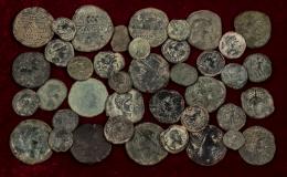 Lot of 40 Ancient Hispania coins. Various denominations from mints such as Acinipo, Cárbula, Carteia, Carmo, Corduba, Cástulo, Punic Ilici, Cunbaria, Obulco, Orippo, Osset, Irippo, Sacili, Sexi, Sisipo, Iliberri, Laelia, and Lastigi.. Ae. It is essential a rigorous examination of the lot. ONLY SHIPPING TO SPAIN PENINSULA. NO RETURNS ALLOWED. F/VF. Est...700,00.