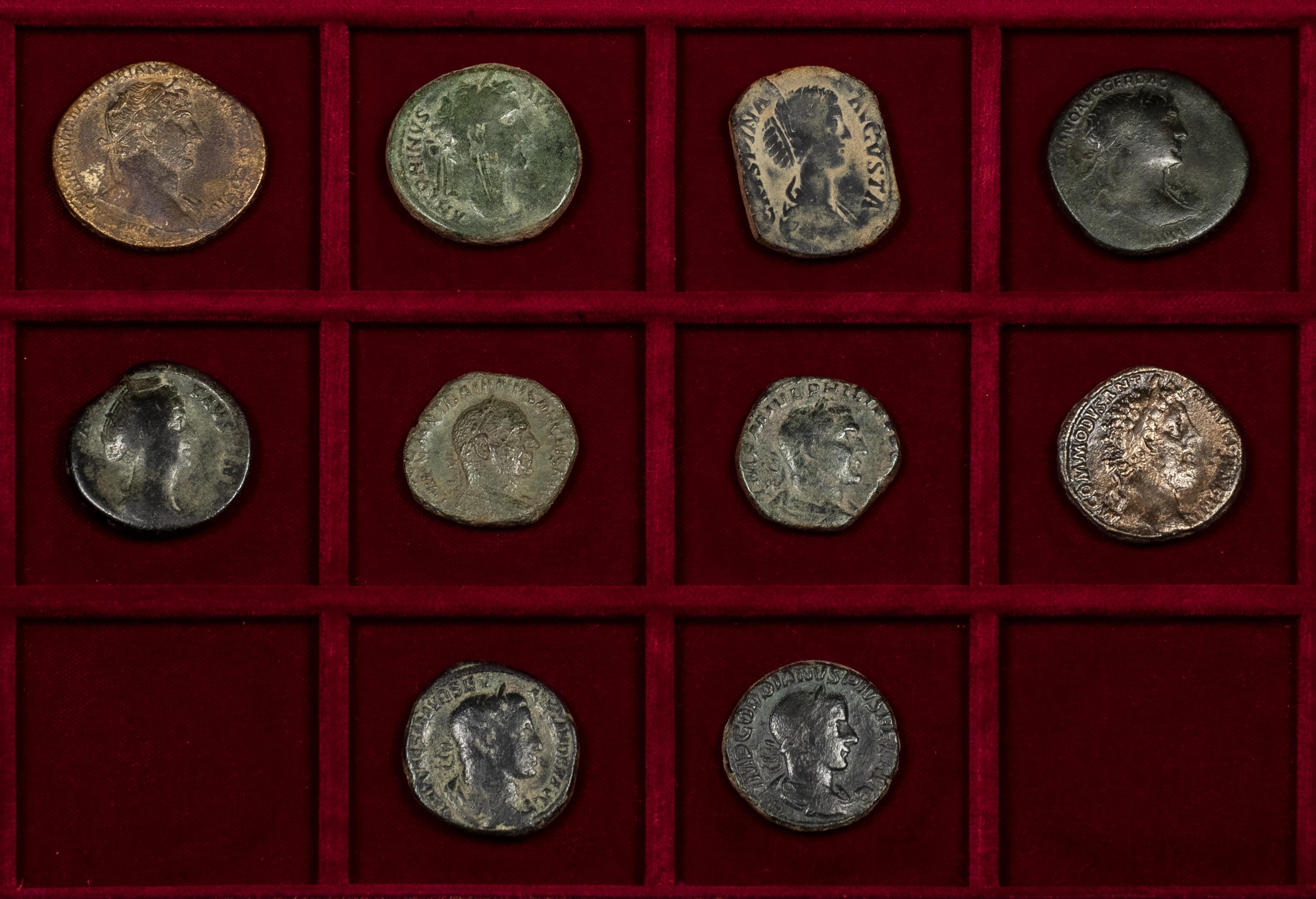 Lot of 10 Roman Empire coins. Sestertii of Emperors such as: Trajan, Hadrian, Antoninus Pius, Faustina, Commodus, Crispina, Trajan Decius, Gordian III, Philip I, and Alexander Severus. All different and highly sought after. Ae. It is essential a rigorous examination of the lot. ONLY SHIPPING TO SPAIN PENINSULA. NO RETURNS ALLOWED. Choice F/Almost VF. Est...500,00.