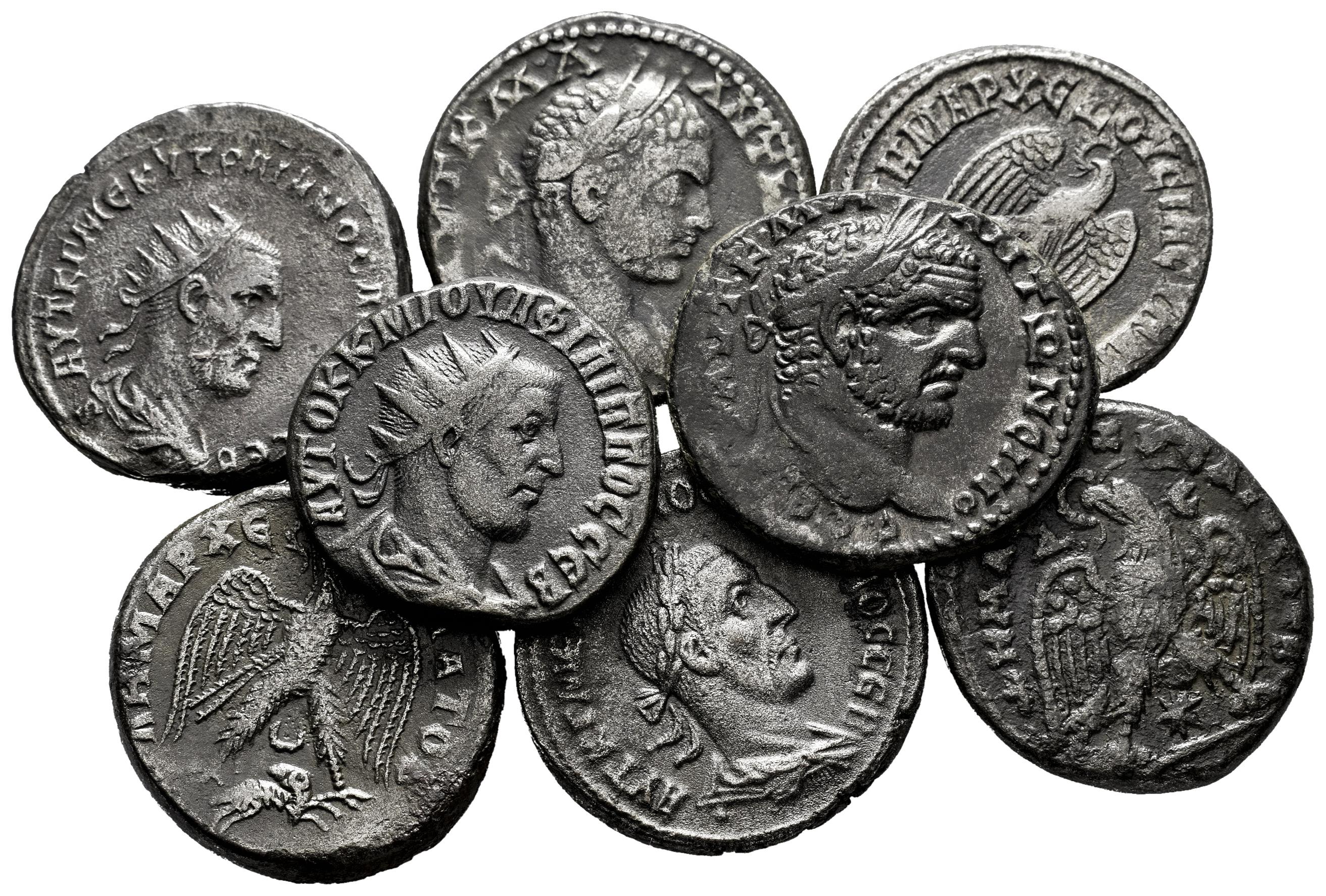 Lot of 8 coins from the Roman Empire. Tetradrachms from Antioch, Seleucis and Pieria of the next Emperors: Trajan Decius, Caracalla, Eligogabalus, Gordian III Philip I and Philip II. Bi. It is essential a rigorous examination of the lot. ONLY SHIPPING TO SPAIN PENINSULA. NO RETURNS ALLOWED. Almost VF/Choice VF. Est...500,00.