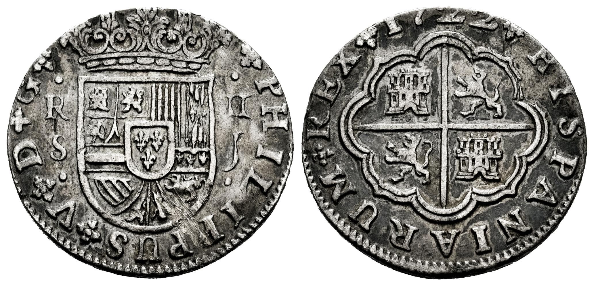 Philip V (1700-1746). 2 reales. 1722. Sevilla. J. (Cal-980). Ag. 4,24 g. Toned. VF. Est...70,00.