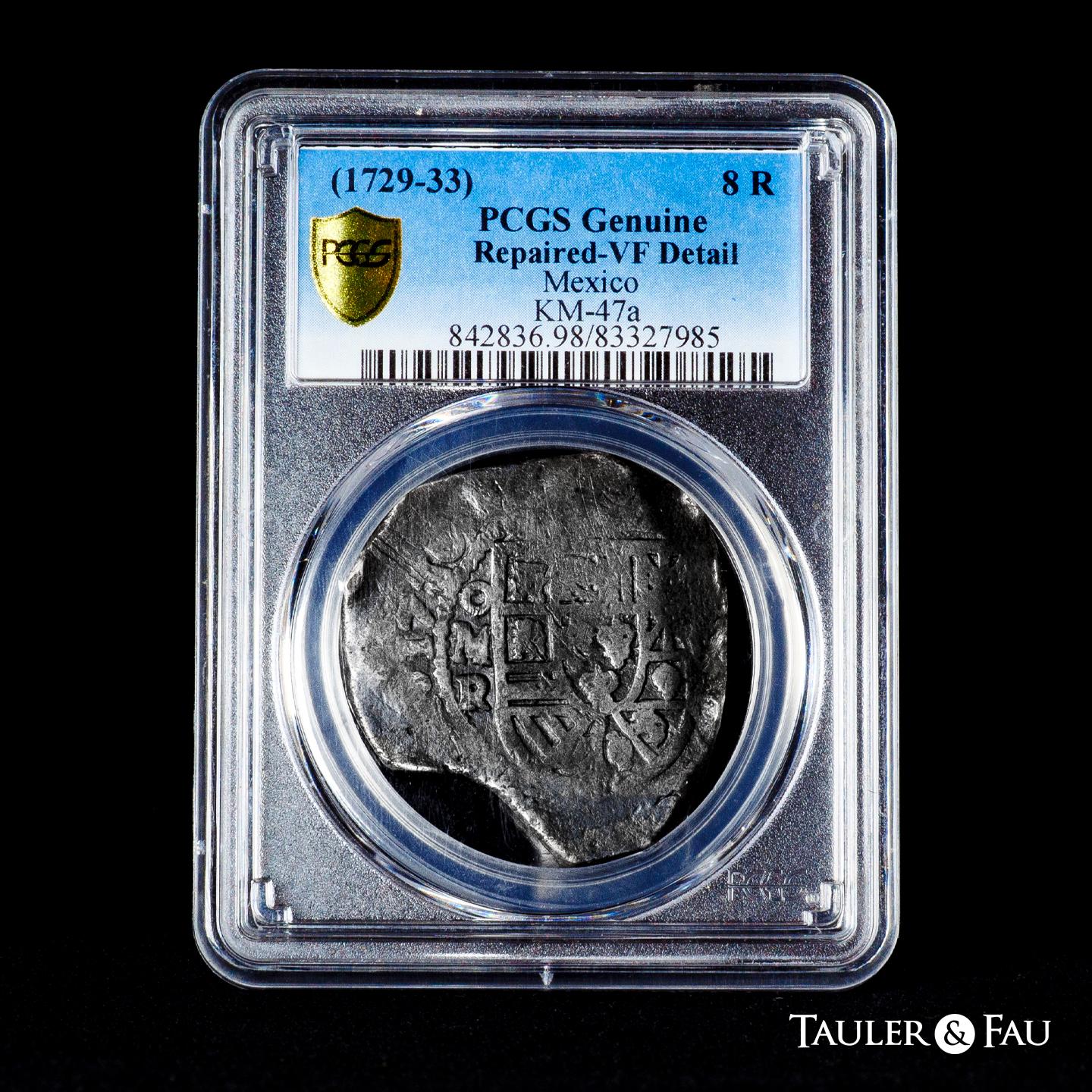 Philip V (1700-1746). 8 reales. 1730. Mexico. R. (Cal-1416). Ag. Slabbed by PCGS as Genuine (Cleaned-VF detail Chop Mark). Poorly slabbed, no date provided. Est...400,00.