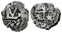 Luis I (1724). 1/2 real. 1725. Potosi. (Cal-9). (Bustos-P05R-25). Ag. 1,24 g. Dot in the monogram. Rare. Almost VF/Choice F. Est...150,00.