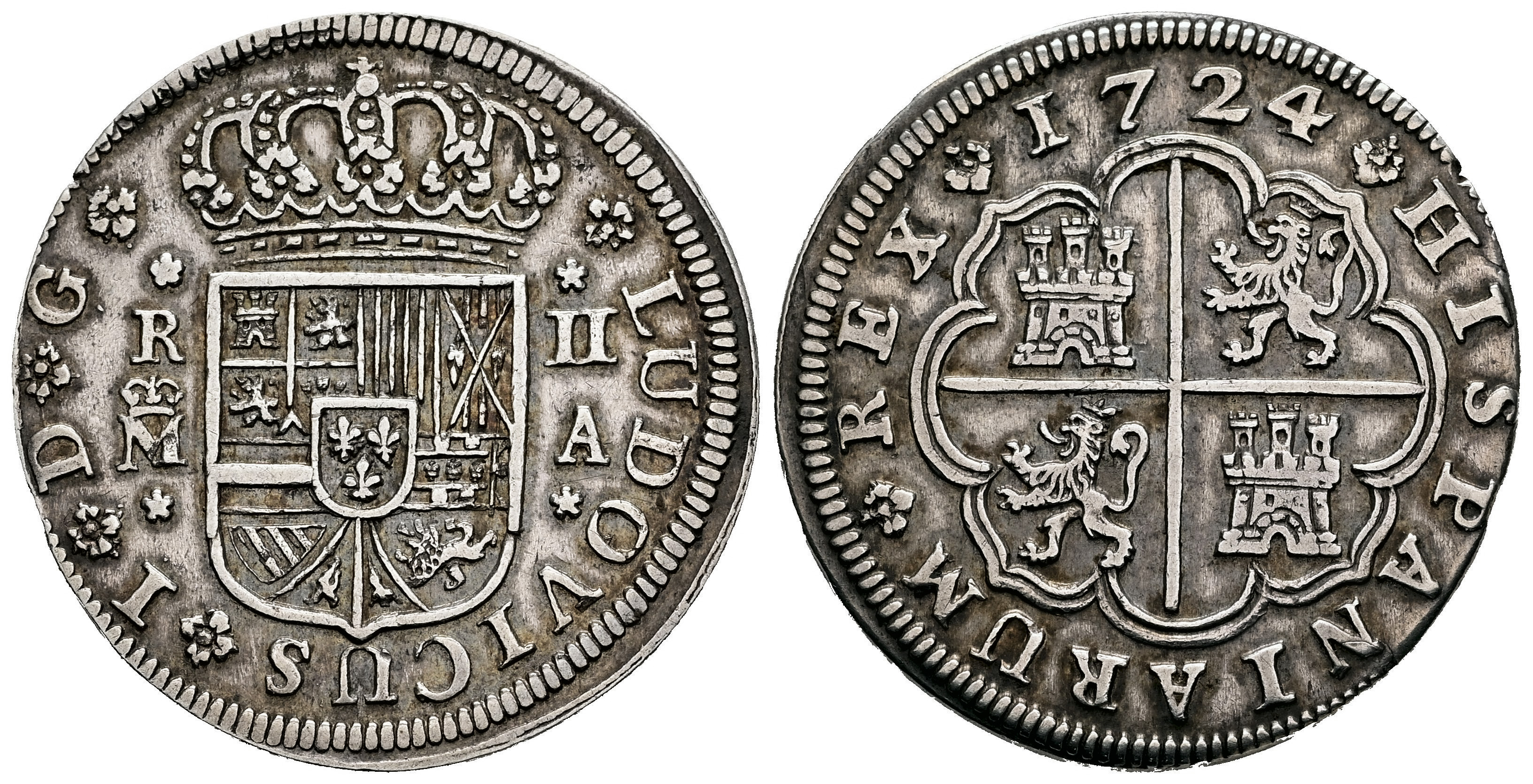 Luis I (1724). 2 reales. 1724. Madrid. A. (Cal-20). (Bustos-Md2R-24b). Ag. 5,56 g. Toned. Very scarce. Choice VF. Est...300,00.