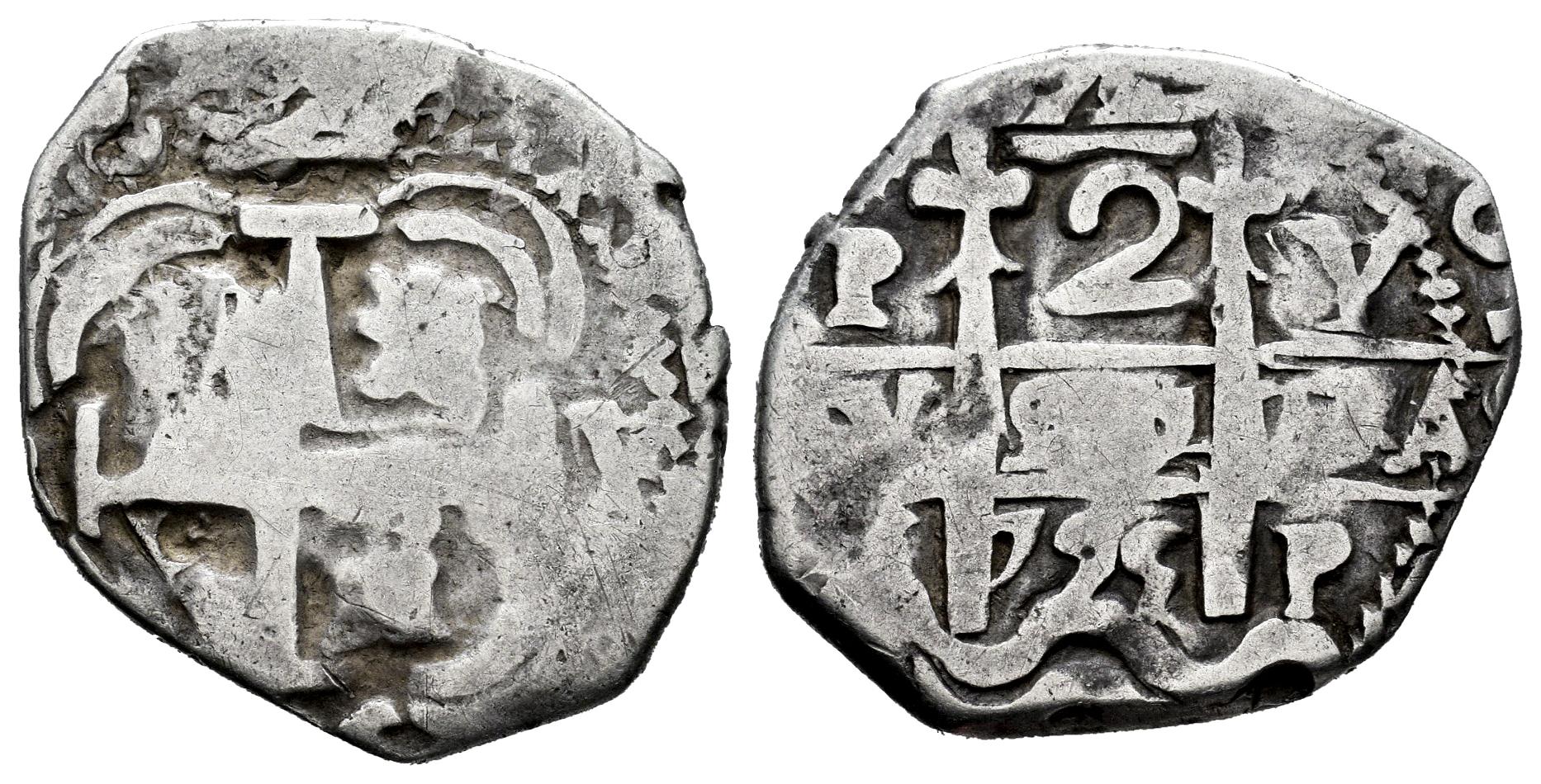 Luis I (1724). 2 reales. 1725. Potosi. Y. (Cal-25). (Bustos-P2R-25). Ag. 5,06 g. Rare. Choice F. Est...300,00.