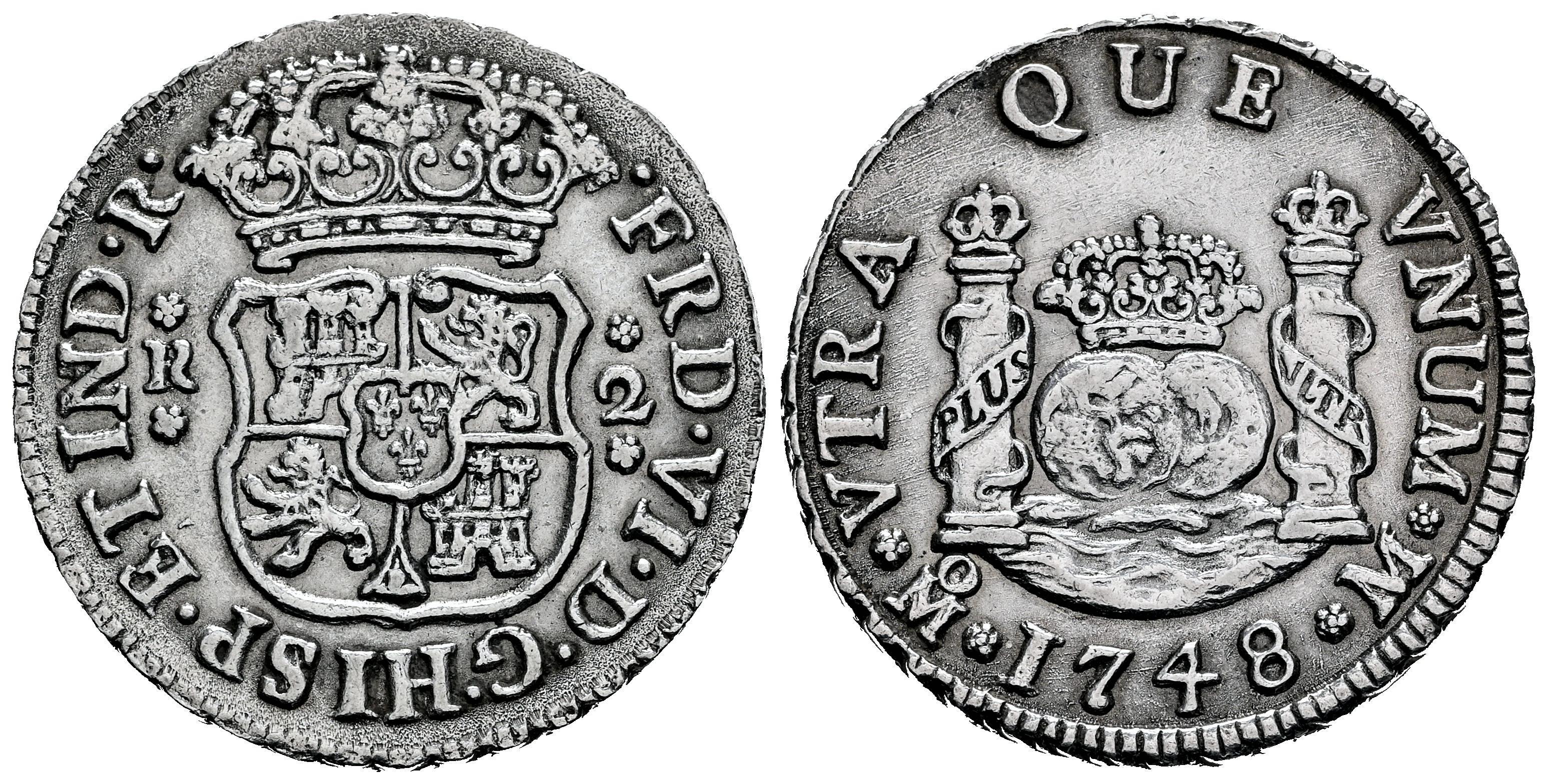 Ferdinand VI (1746-1759). 2 reales. 1748. Mexico. M. (Cal-287). Ag. 6,72 g. Cleaned. Choice VF. Est...150,00.