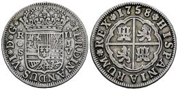 Ferdinand VI (1746-1759). 2 reales. 1758. Sevilla. JV. (Cal-343). Ag. 5,76 g. Almost VF. Est...70,00.