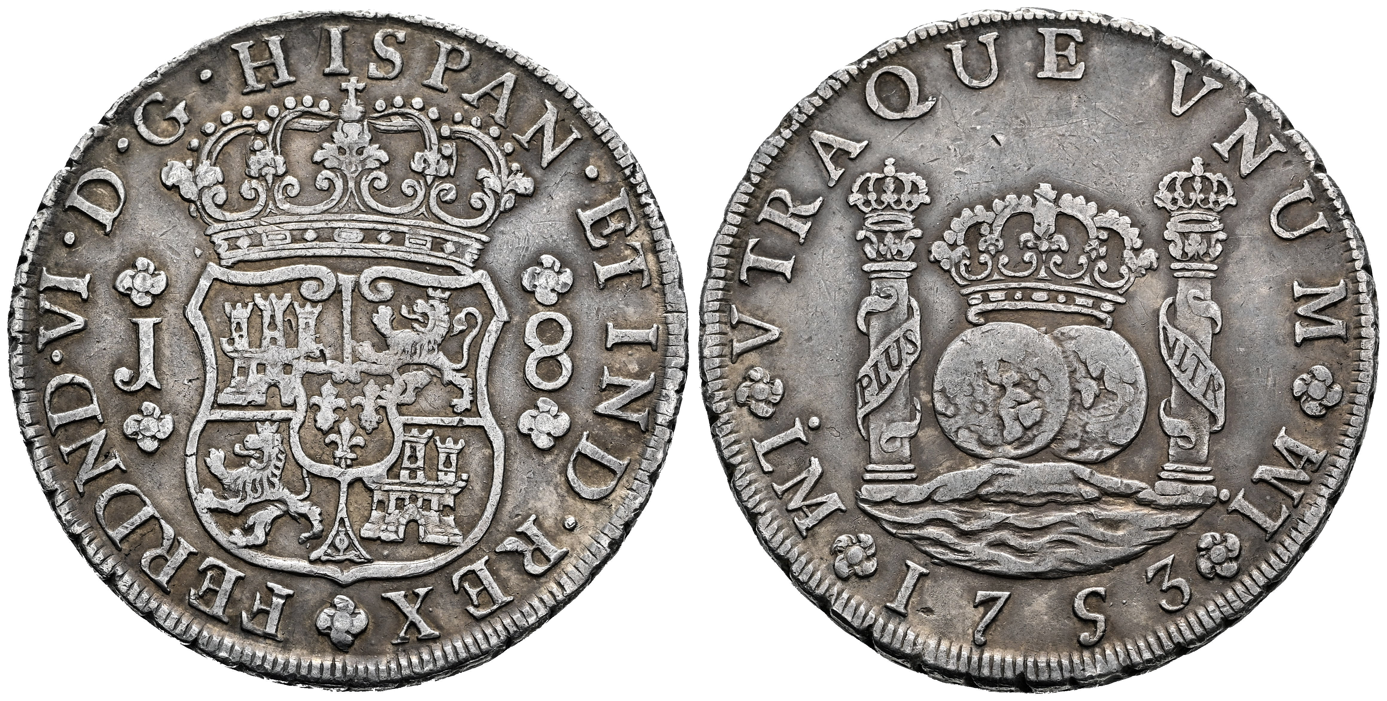 Ferdinand VI (1746-1759). 8 reales. 1753. Lima. J. (Cal-455). Ag. 26,83 g. Slight patina. Choice VF. Est...650,00.