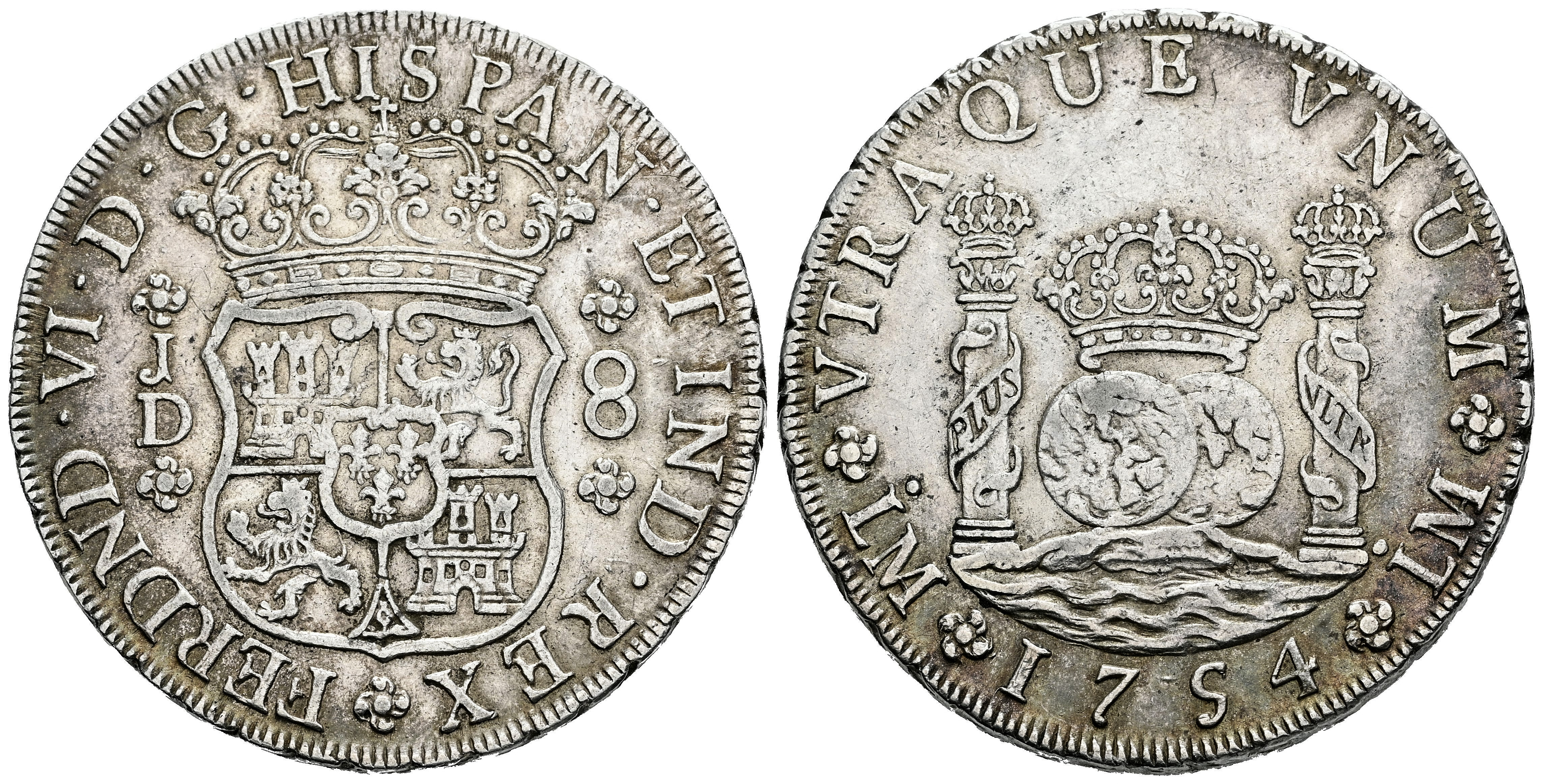 Ferdinand VI (1746-1759). 8 reales. 1754. Lima. JD. (Cal-457). Ag. 26,96 g. Minimal hairlines. Almost XF. Est...600,00.