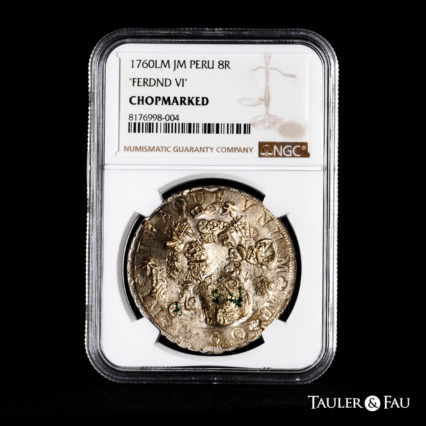 Ferdinand VI (1746-1759). 8 reales. 1760. Lima. JM. (Cal-468). Ag. Traces of luster. Slabbed by NGC as Chomarked. Est...450,00.