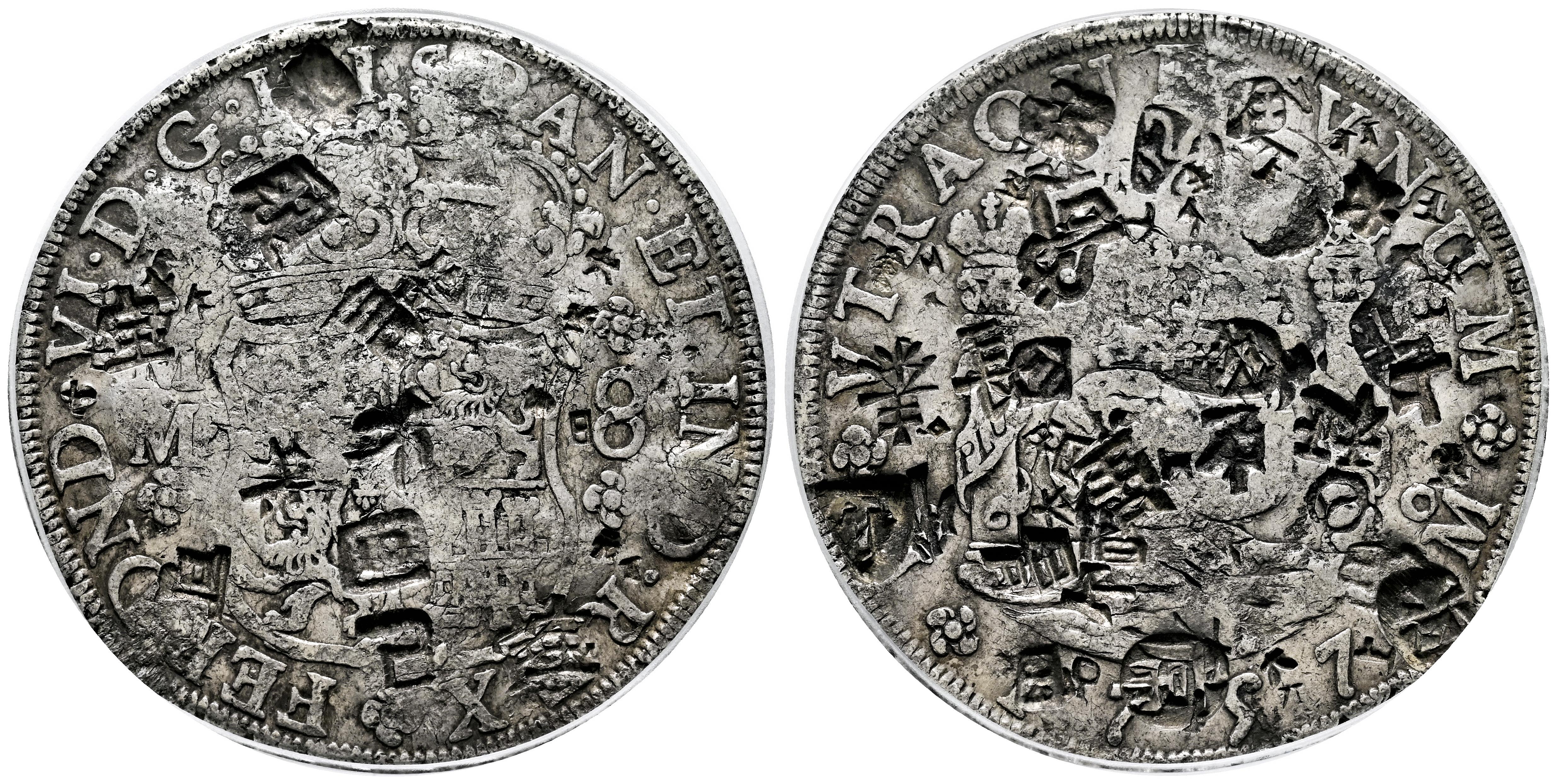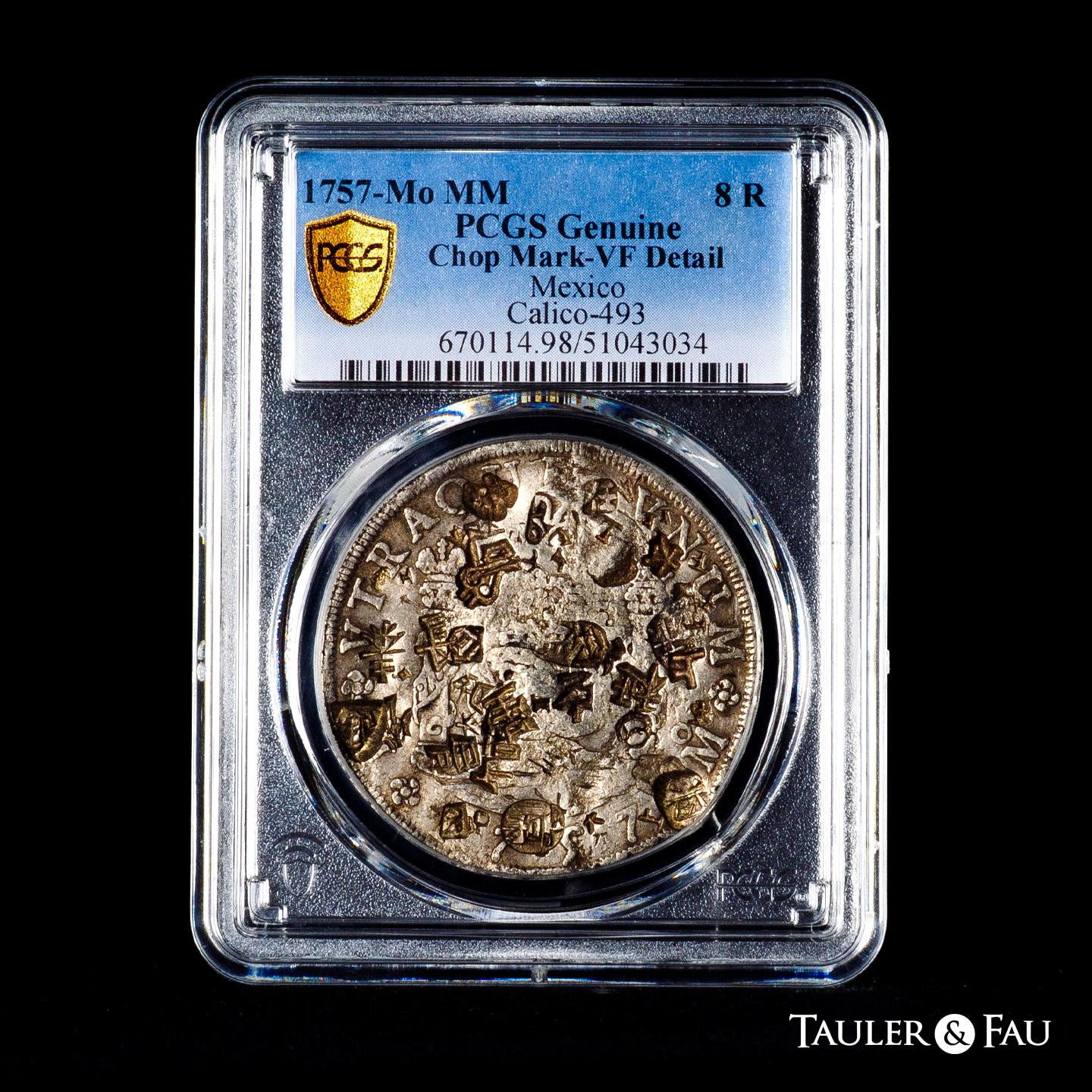 Ferdinand VI (1746-1759). 8 reales. 1757. Mexico. MM. (Cal-493). Ag. Slabbed by PCGS as Genuine, Chopmark-VF Detail. Est...400,00.