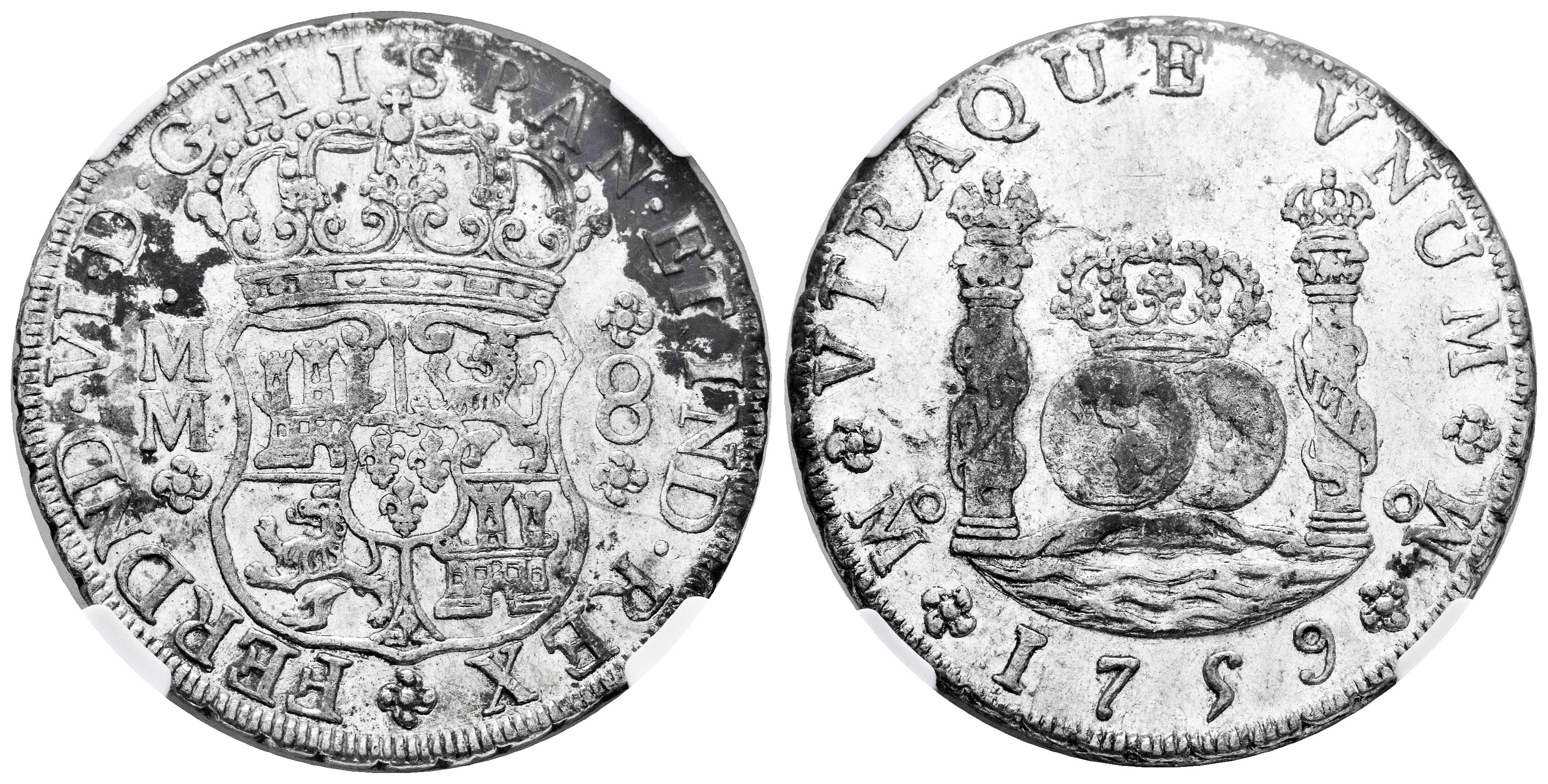 Ferdinand VI (1746-1759). 8 reales. 1759. Mexico. MM. (Cal-495). Ag. Slabbed by NGC as AU Details, Cleaned. Est...450,00.