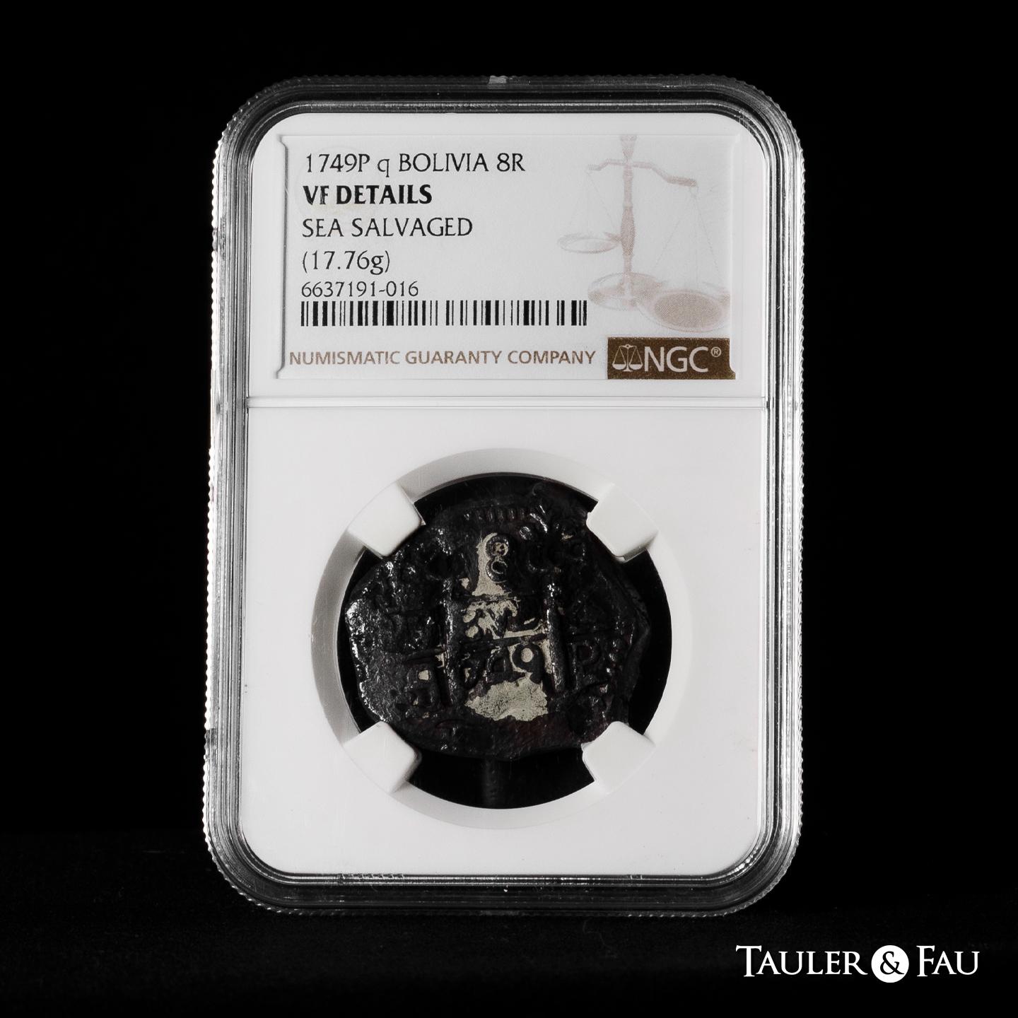 Ferdinand VI (1746-1759). 8 reales. 1749. Potosi. q. (Cal-511). (Km-40). Ag. 17,76 g. Slabbed by NGC as VF Details, Sea Salvaged. Est...250,00.