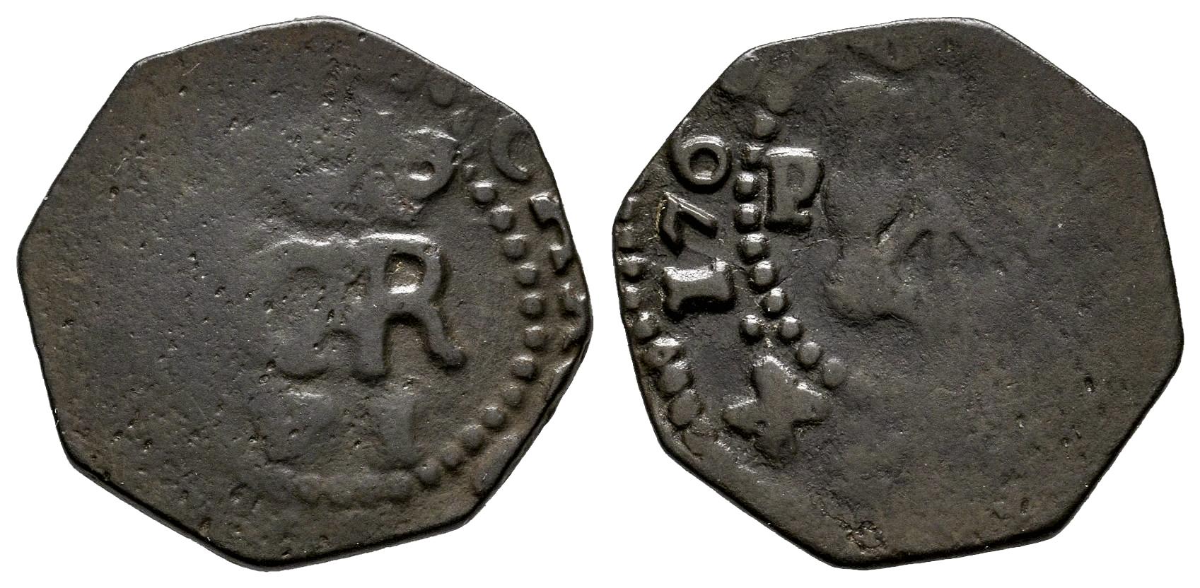 Charles III (1759-1788). 1 maravedi. 1768. Pamplona. (Cal-18). (Ros-4.9.1). Ae. 2,73 g. Weak of strike. Scarce. Almost VF. Est...50,00.