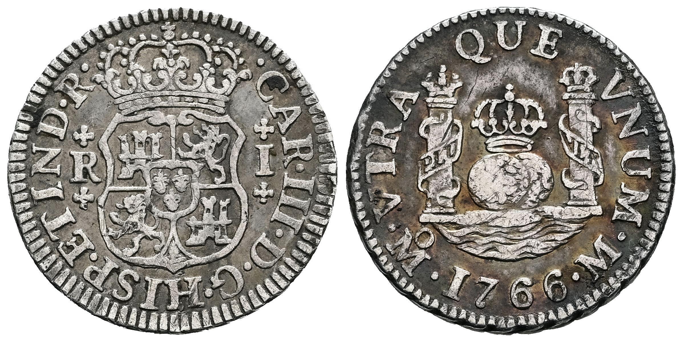Charles III (1759-1788). 1 real. 1766. Mexico. M. (Cal-416). Ag. 3,23 g. Patina. Choice VF. Est...120,00.