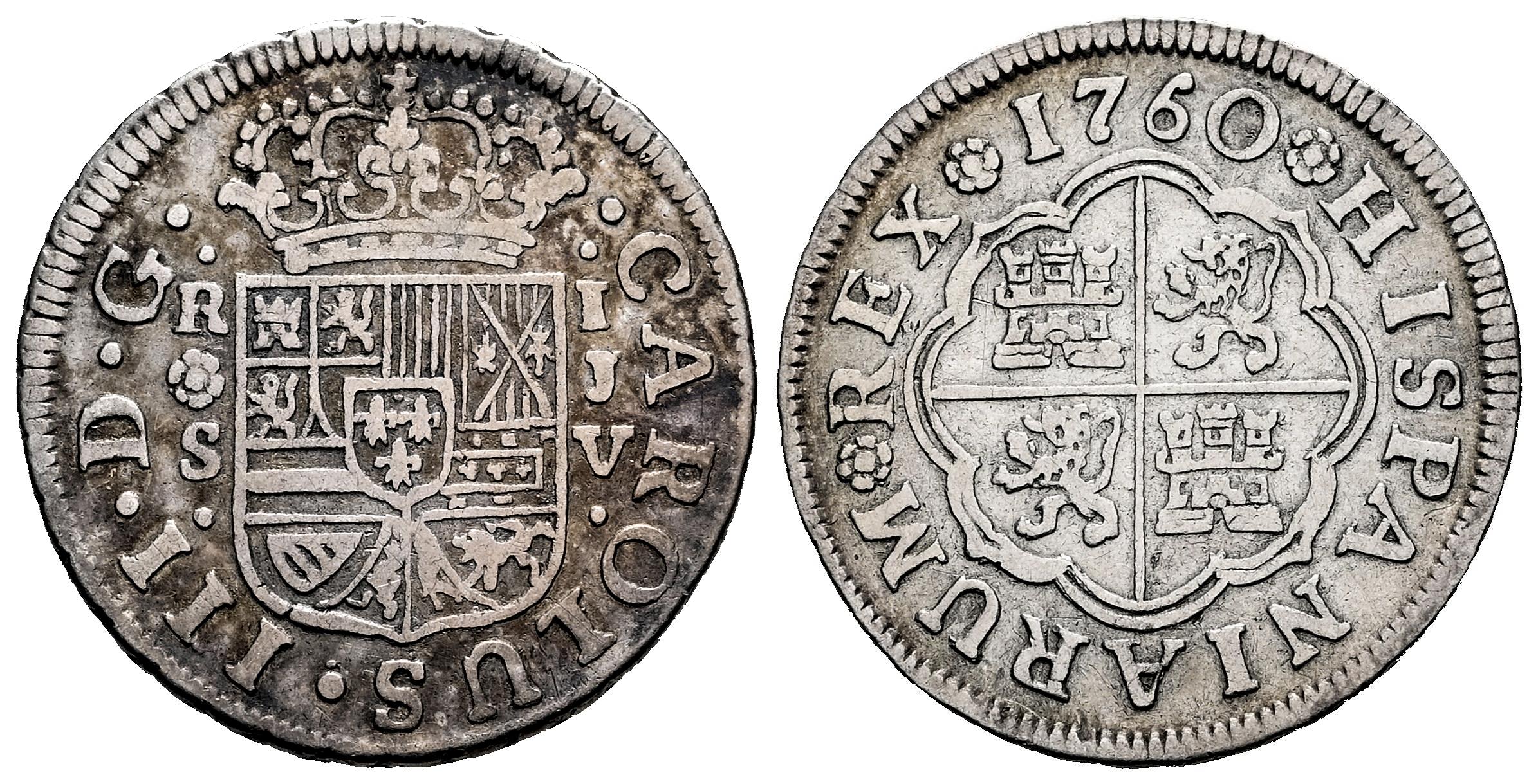 Charles III (1759-1788). 1 real. 1760. Sevilla. JV. (Cal-528). Ag. 2,77 g. Light obverse tone. Almost VF. Est...45,00.