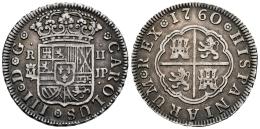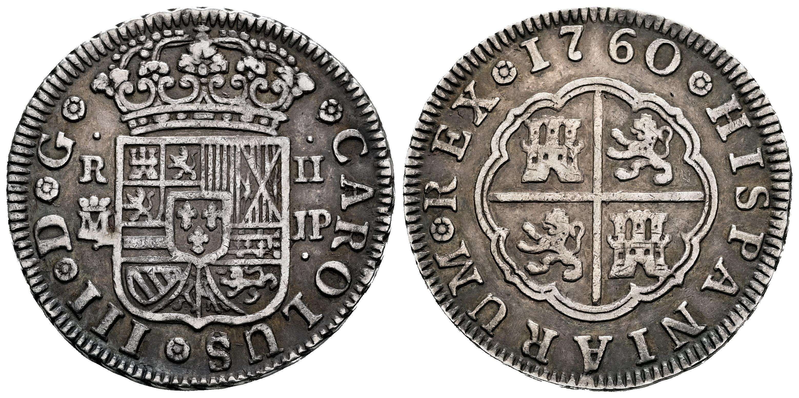 Charles III (1759-1788). 2 reales. 1760. Madrid. JP. (Cal-608). Ag. 5,92 g. Delicate patina. Choice VF. Est...100,00.