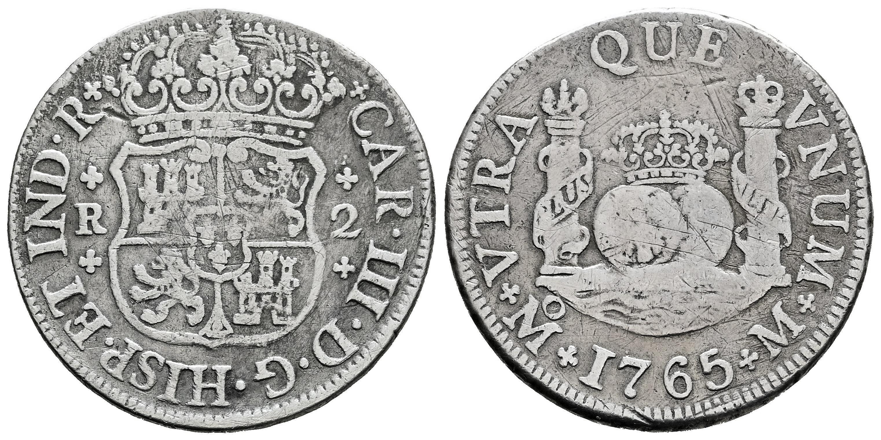 Charles III (1759-1788). 2 reales. 1765. Mexico. M. (Cal-649). Ag. 6,40 g. Scratches. Almost VF. Est...60,00.