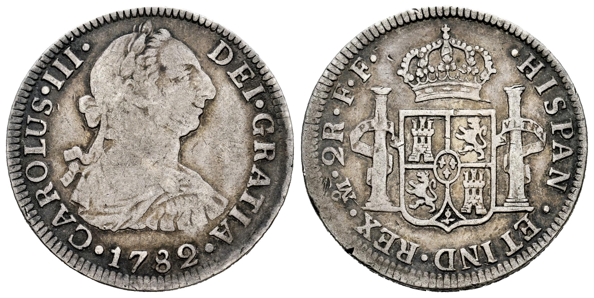 Charles III (1759-1788). 2 reales. 1782. Mexico. FF. (Cal-672). Ag. 6,68 g. Slight patina. Almost VF. Est...70,00.