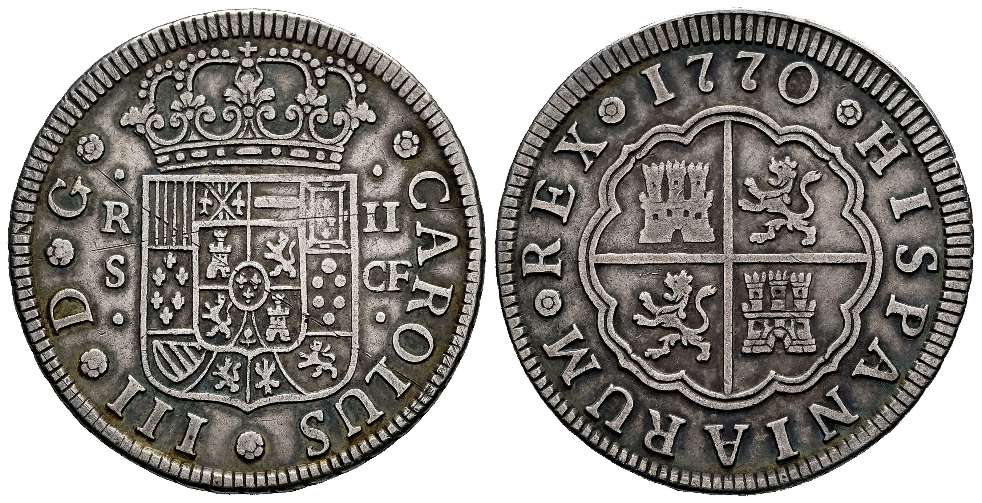 Charles III (1759-1788). 2 reales. 1770. Sevilla. CF. (Cal-779). Ag. 5,70 g. Scratches on obverse. Lightly toned. VF. Est...90,00.