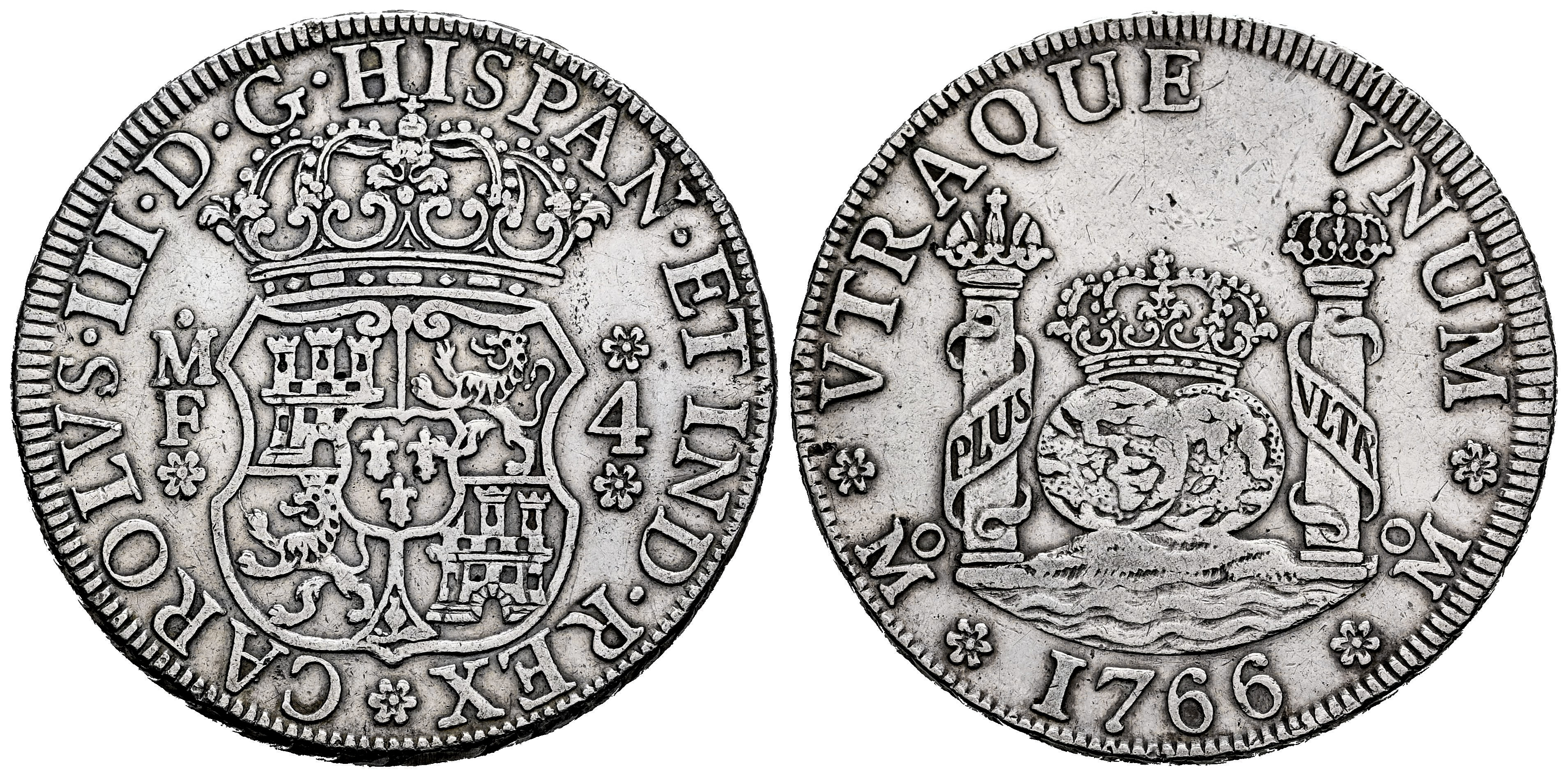 Charles III (1759-1788). 4 reales. 1766. Mexico. MF. (Cal-879). Ag. 13,36 g. Cleaned. Rare. VF. Est...300,00.