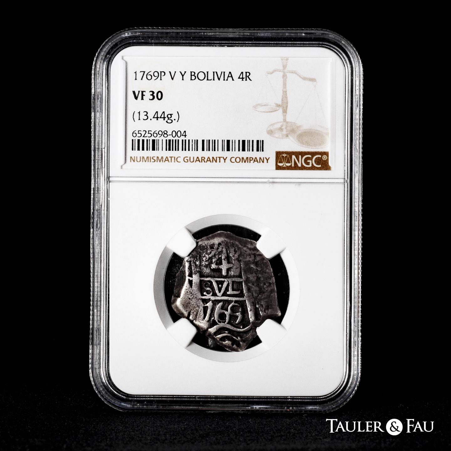 Charles III (1759-1788). 4 reales. 1769. Potosi. V-Y. (Cal-913). Ag. 13,44 g. Slabbed by NGC as VF 30. Est...300,00.