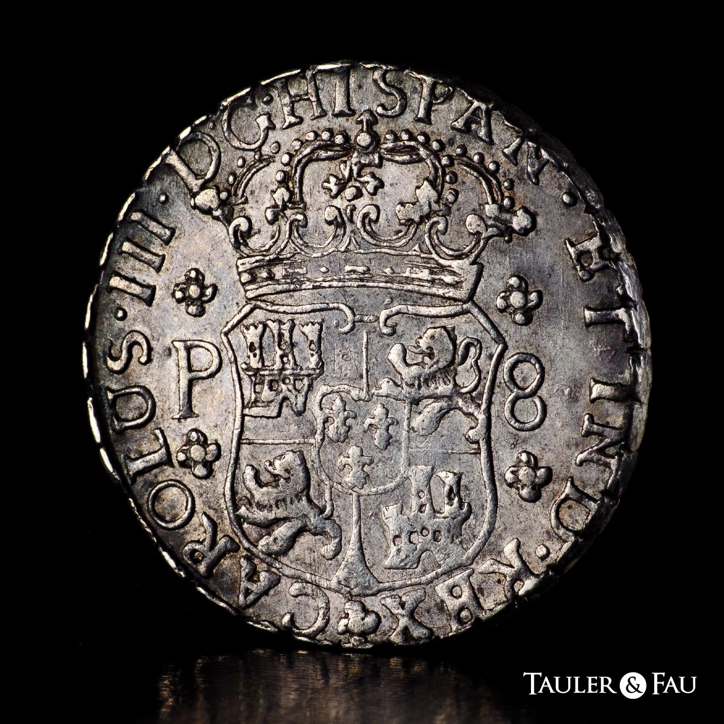 Charles III (1759-1788). 8 reales. 1771. Guatemala. P. (Cal-1004). Ag. 26,84 g. Delicate patina. Scarce. VF. Est...600,00.