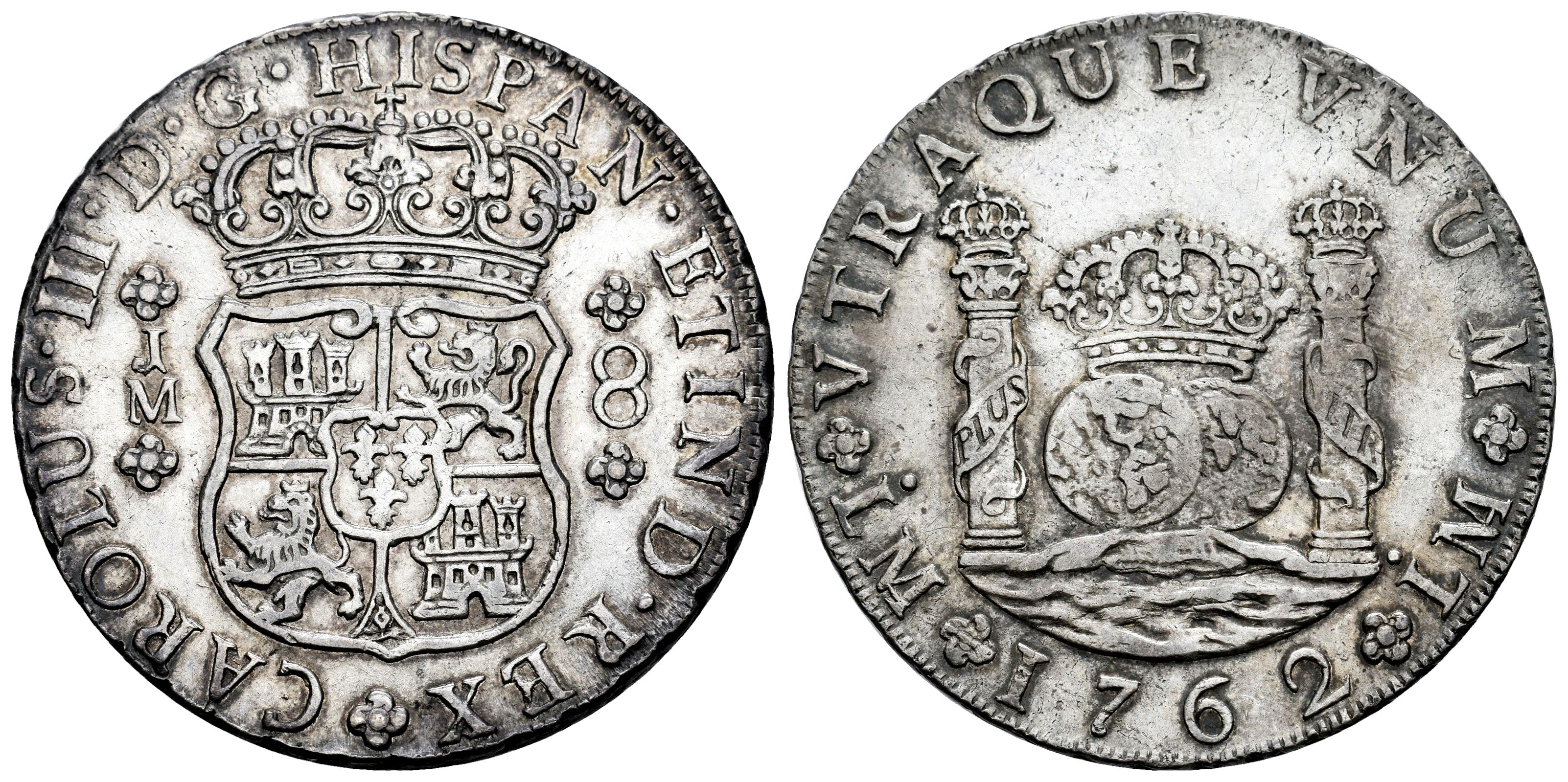 Charles III (1759-1788). 8 reales. 1762. Lima. JM. (Cal-1021). Ag. 26,84 g. Delicate cleaning. Slight patina. Choice VF. Est...600,00.