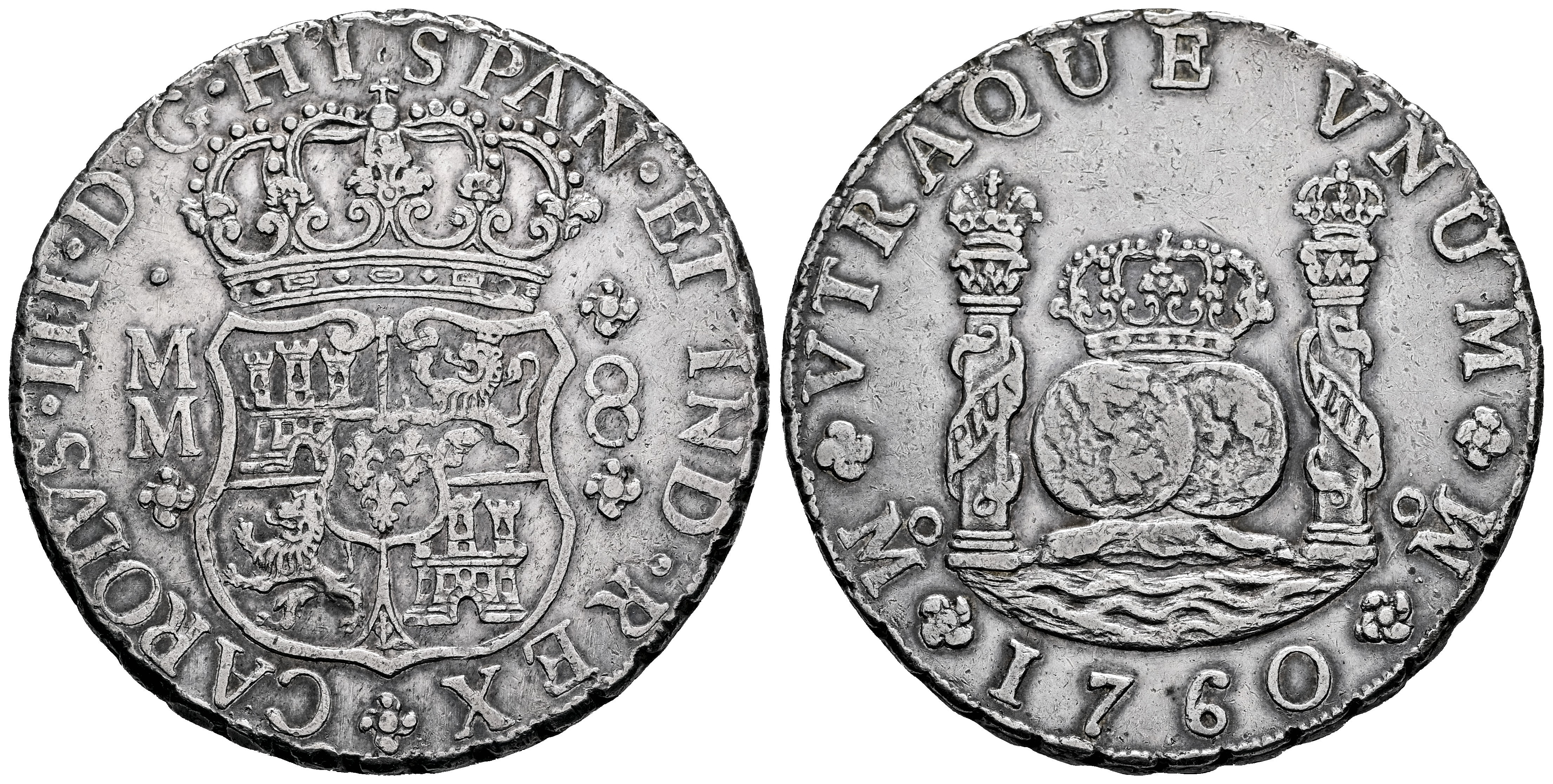 Charles III (1759-1788). 8 reales. 1760. Mexico. MM. (Cal-1073). Ag. 27,06 g. Cleaned. VF. Est...400,00.