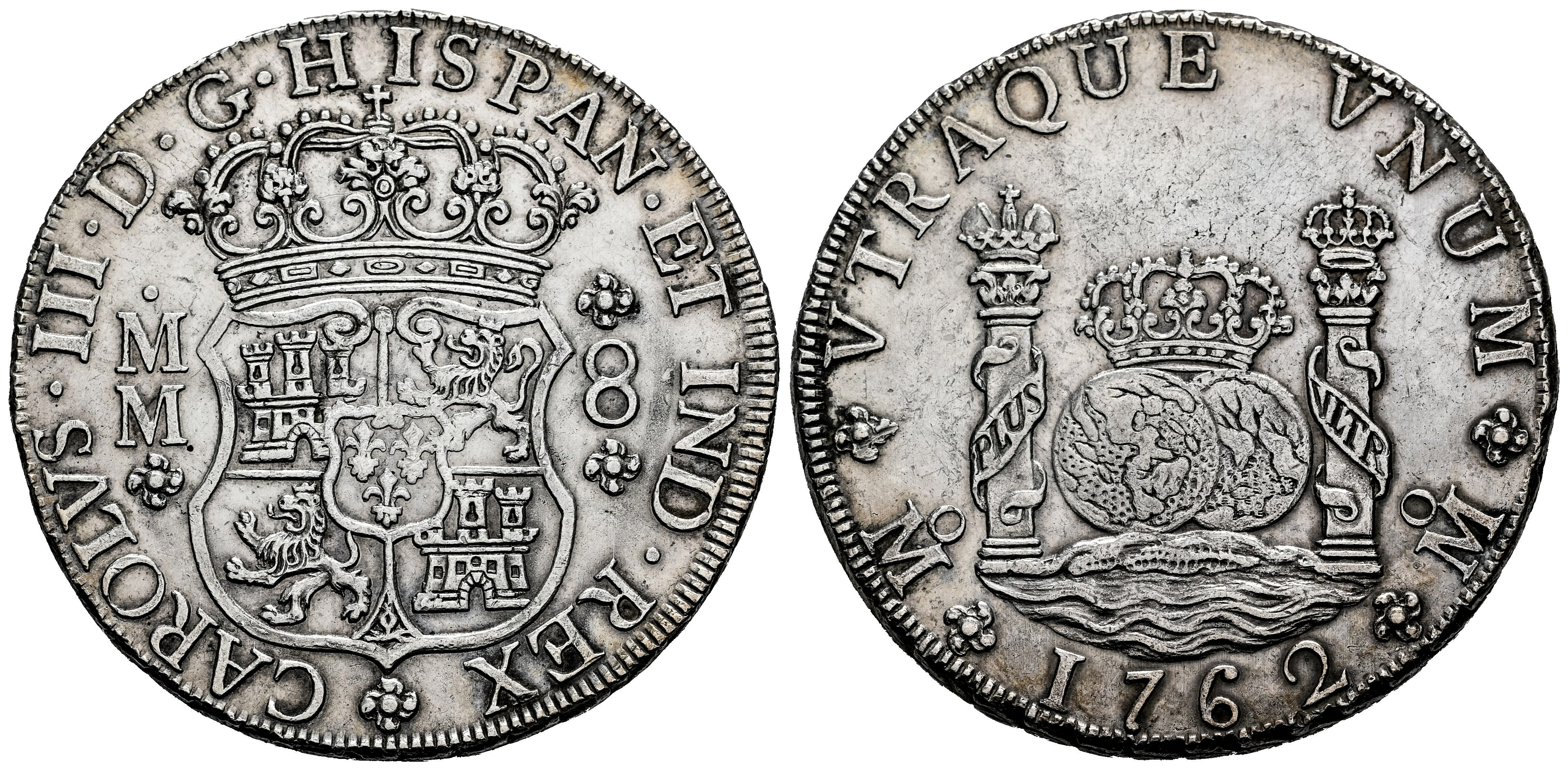 Charles III (1759-1788). 8 reales. 1762. Mexico. MM. (Cal-1080). Ag. 26,96 g. Cleaned. Almost XF. Est...600,00.
